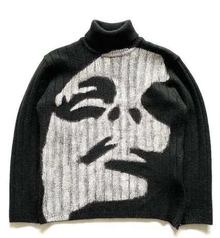 Женский вязаный свитер в готическую полоску гранж-панк фиолетовый черный