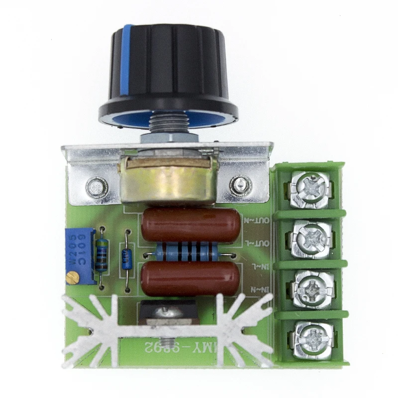 Примечание:Возможны отклонения в 1-3 мм вследствие измерений вручную.Из-за различных дисплеев и различного светильник, изображение может не отражать фактический цвет товара. Спасибо за понимание.Характеристики:Материалы сопротивления: металл и пластикВходное напряжение: 220 В переменного токаРегулирование напряжения: 50-220 В переменного токаМаксимальная мощность: 2000 ВтРазмер: 48x60x28 ммПодключите это устройство к лампе или бытовой технике в серии подключения, затем поверните ручку для затемнения, скорости, напряжения, контроля температуры.Поскольку мощность очень большая, поэтому нормальная бытовая техника или небольшие фабрики достаточно для использования.Этот регулятор давления с двухсторонним кремниевым управлением высокой мощности, потенциометр имеет гайки, не требует добавления каких-либо компонентов, очень удобный и практичныйПрименимый прибор: электрическая печь, водонагреватель, лампы, небольшой двигатель, электрический утюг. И так далее