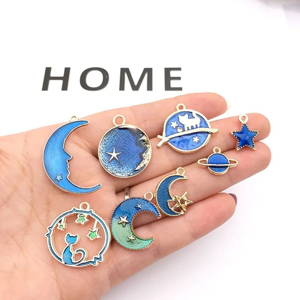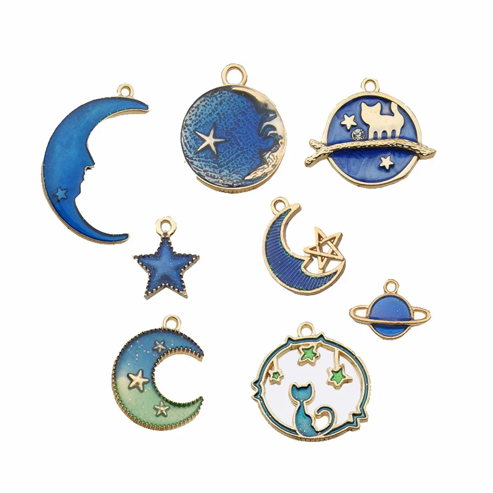 10 шт., оптовая продажа, модные подвески из сплава в форме Луны, звезд, кошек, подвески для женщин, DIY ювелирные изделия, серьги, ожерелье, браслет