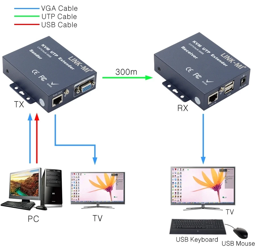 Тип товара: 300M VGA + USB KVM удлинитель
