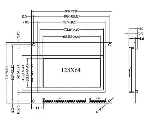 COG 12864 ЖК-модуль без шрифта