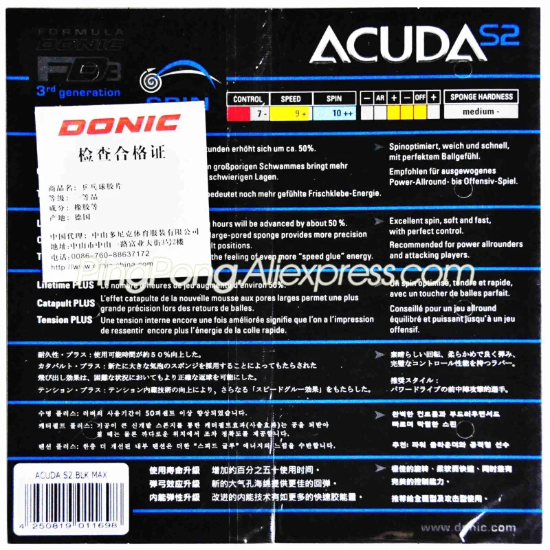 -Danic Acuda S2-очень быстрая резина с отличными вращающимися качествами. Близко к столу или вдали от него можно играть «Петля»-Петля "как в дни скорости склеенные каучуки.