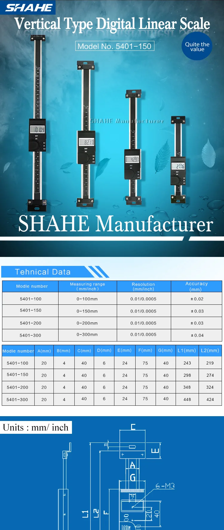 Диапазон измерения: 0-200 мм