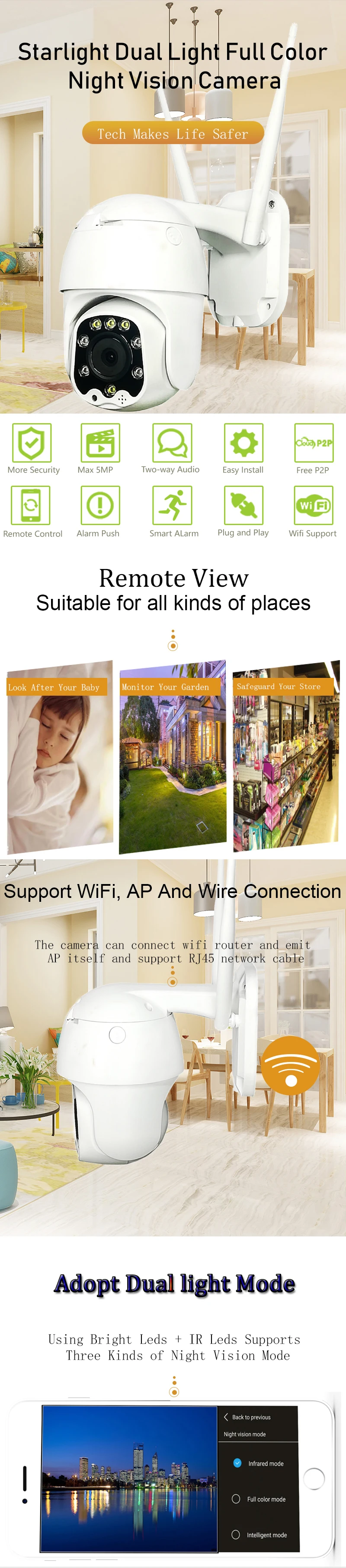 Интеллект: в режиме ночного видения, если нет объектов движения, ИК-светодиоды светятся, и он будет режим B & W, если обнаружит некоторые объекты движения, он включит белые светодиоды и переключится в красочный режим