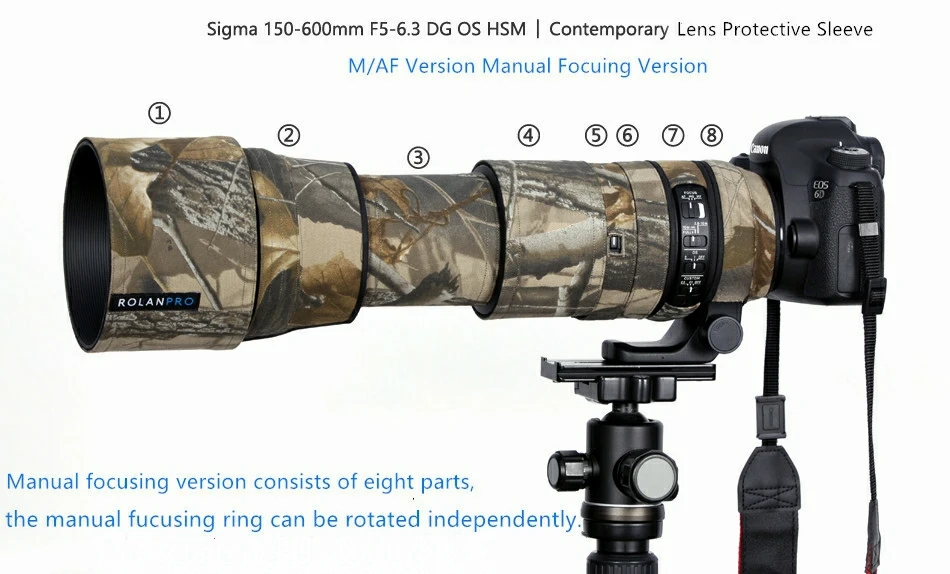 Эта страница представляет собой защитный чехол AF версии.Защитный чехол с автофокусом состоит из 6 частей. По сравнению с версией ручного фокуса, версия автофокуса уменьшает количество компонентов защитного корпуса, имеет лучшую целостность, а защитный чехол более совместим и удобен в хранении. Однако ручное кольцо фокусировки не может работать после установки защитного чехла, поэтому вы можете использовать только функцию автофокуса (только для AF).Кольцо зума и кольцо кронштейна могут вращаться независимо, и обычно не влияют на работу объектива.Конец объектива 600 мм также имеет специальный защитный чехол, который можно использовать без установки. После установки этой части защитного чехла, это повлияет на вытягивание объектива.