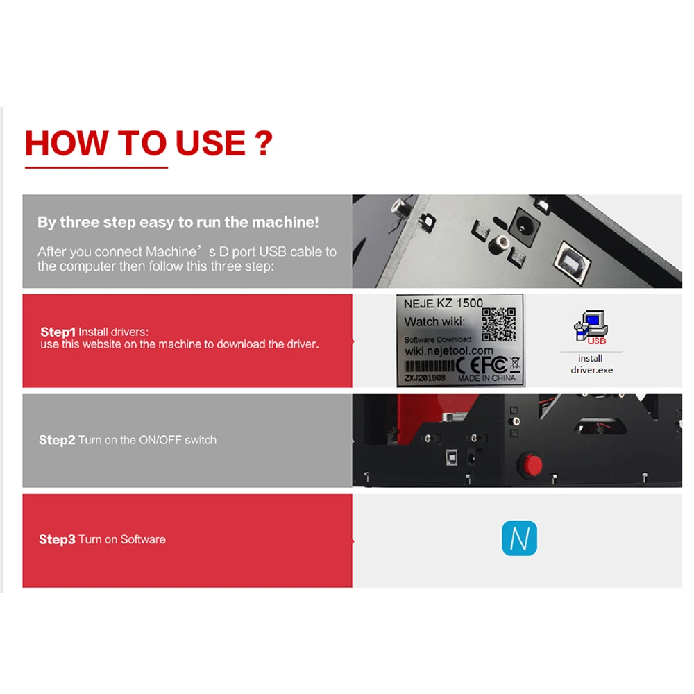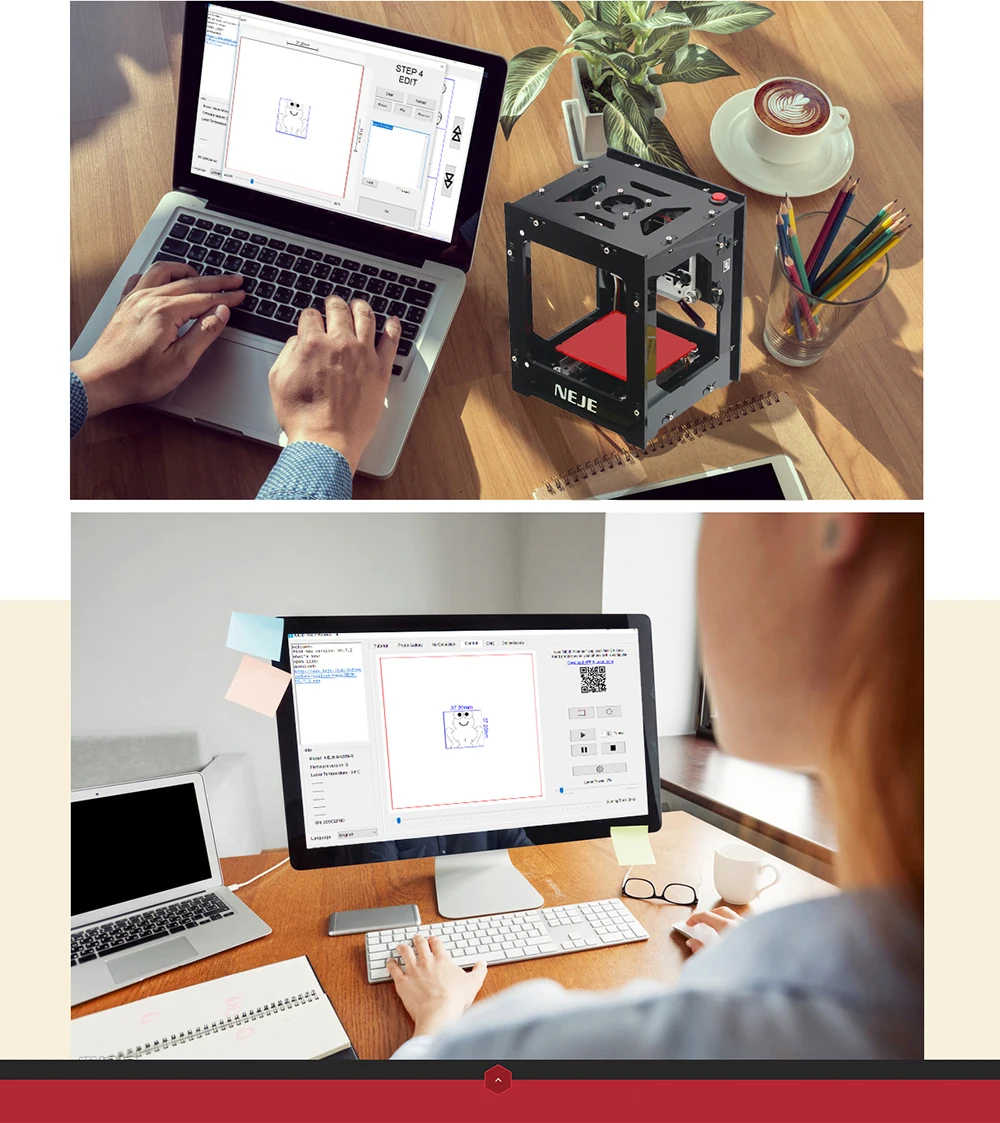 Сканируйте qr-код с помощью приложения NEJE Scanner (только поддержка версии Android), он автоматически подключается к компьютерному программному обеспечению, прост и прост в использовании.