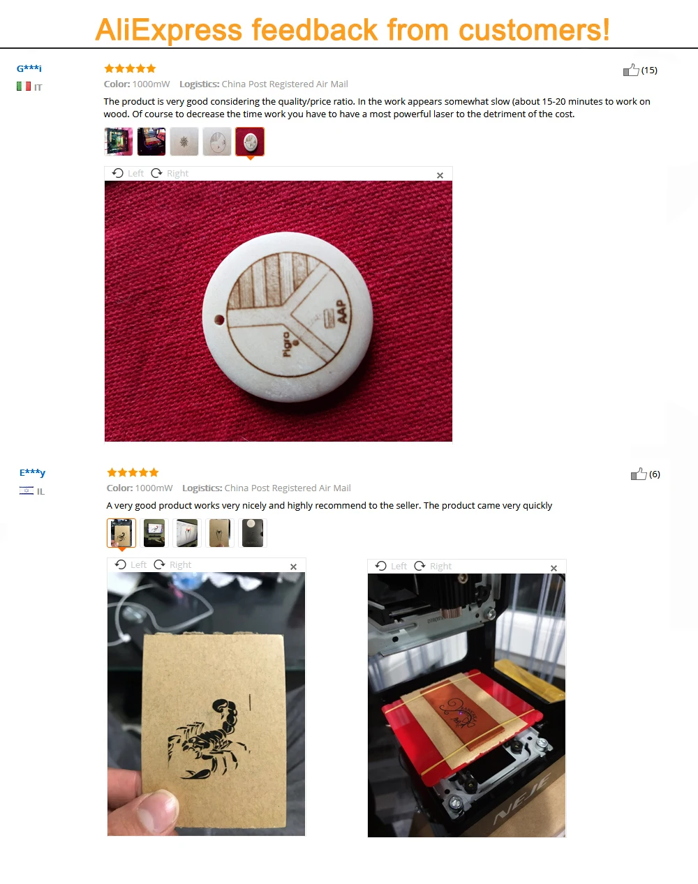 Оснащен 445нм лазерной трубкой, высокомощным лазером, TTL контролем, с датчиком температуры, безопасным и гравированным глубже.