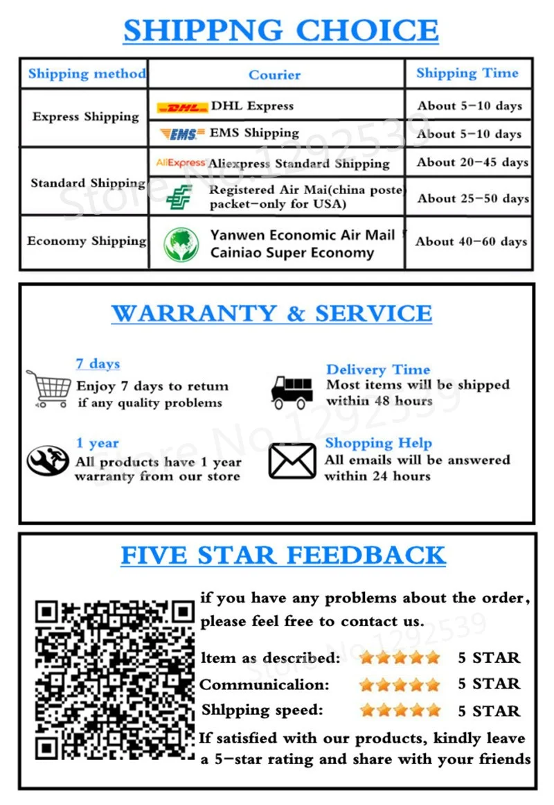 5. Due to stock status and time differences, we will choose to ship your item from our first available warehouse for fast delivery.