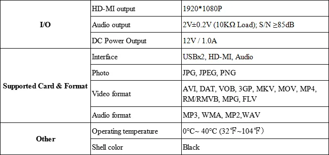 Accessories: AC adapter, remote control, HD-MI cableProduct Parameters
