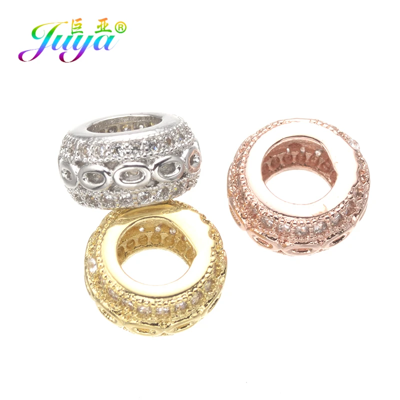 Juya, ручная работа, позолоченные, посеребренные, с большим отверстием, медные разделители, очаровательные бусины, аксессуары для украшения своими руками, рукоделие, изготовление ювелирных изделий