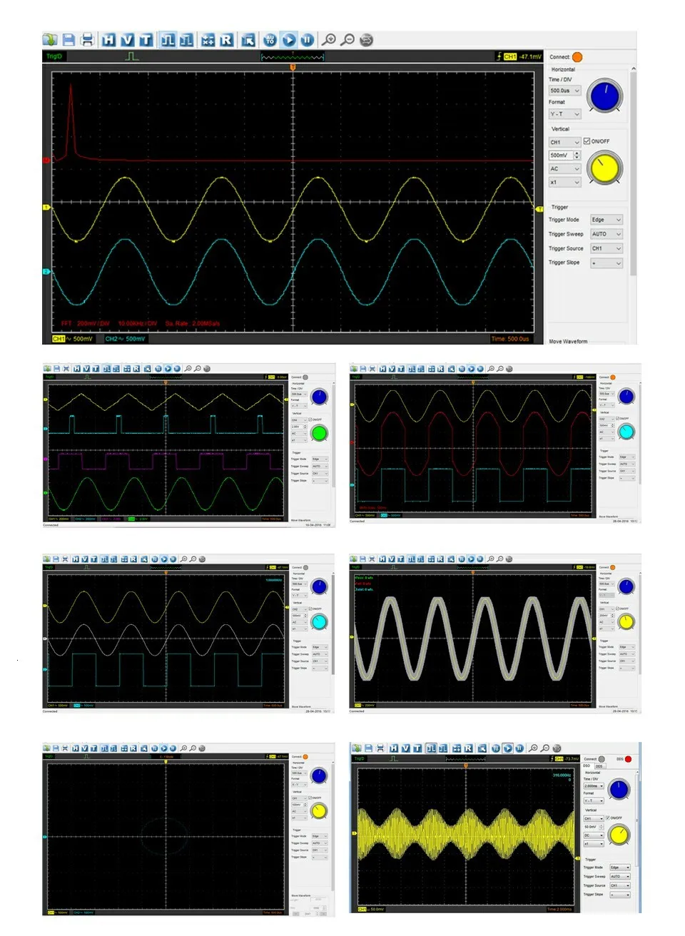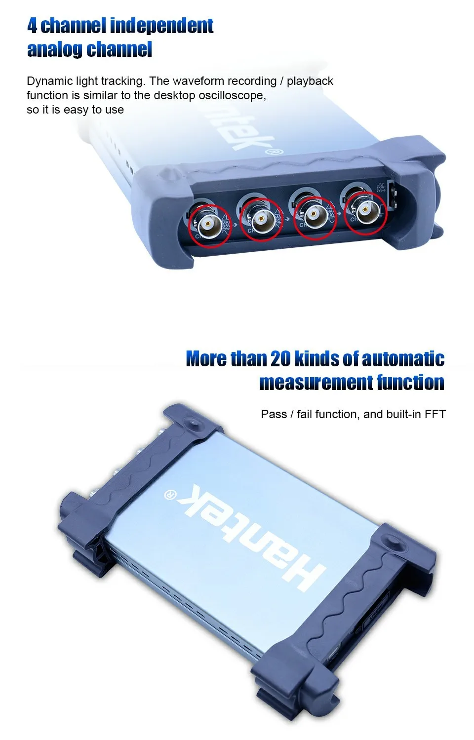 · Проверка прохода/сбоя, функция триггера, отслеживание динамических курсоров, запись сигналов и функция воспроизведения. Интерфейс работы аналогичен осциллографу banchtop, простота в эксплуатации и высокая производительность.