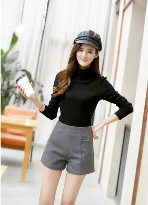 Женские осенне зимние кожаные шорты повседневные однотонные с 2019 карманами