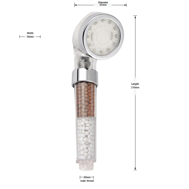 1. Питание от воды и не требует внешнего источника питания. 2. АБС-пластик и устойчивый к коррозии. 3. Преобразует воду в красивый водопад света. 4. Заводская цена и цена являются вполне конкурентоспособными 5. Светодиодная анионная душевая головка