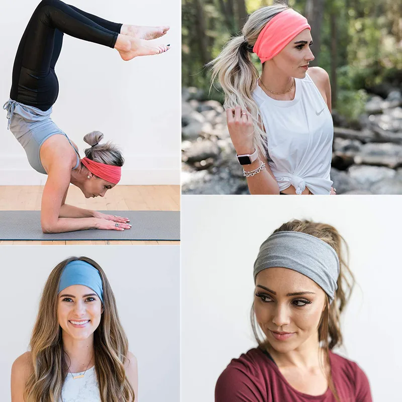 Однотонные широкие хлопковые спортивные повязки на голову для йоги для женщин и взрослых девочек, двусторонние эластичные повязки для волос, аксессуары для волос в виде тюрбана, головные уборы