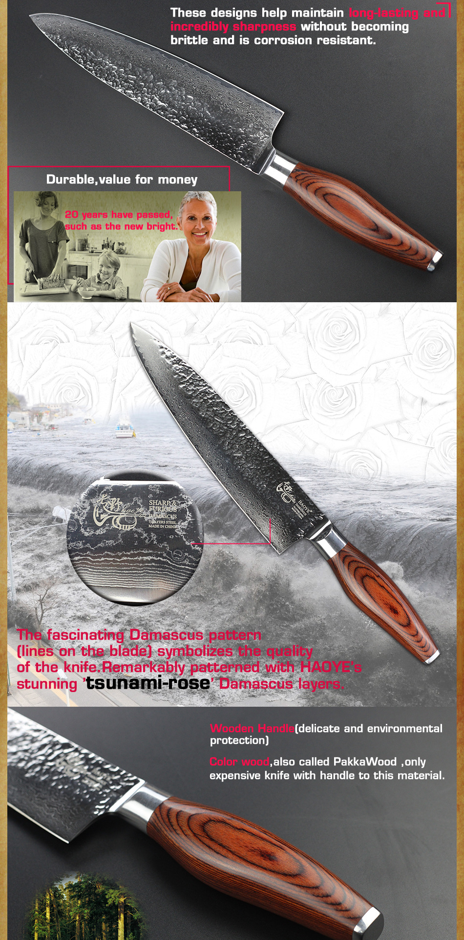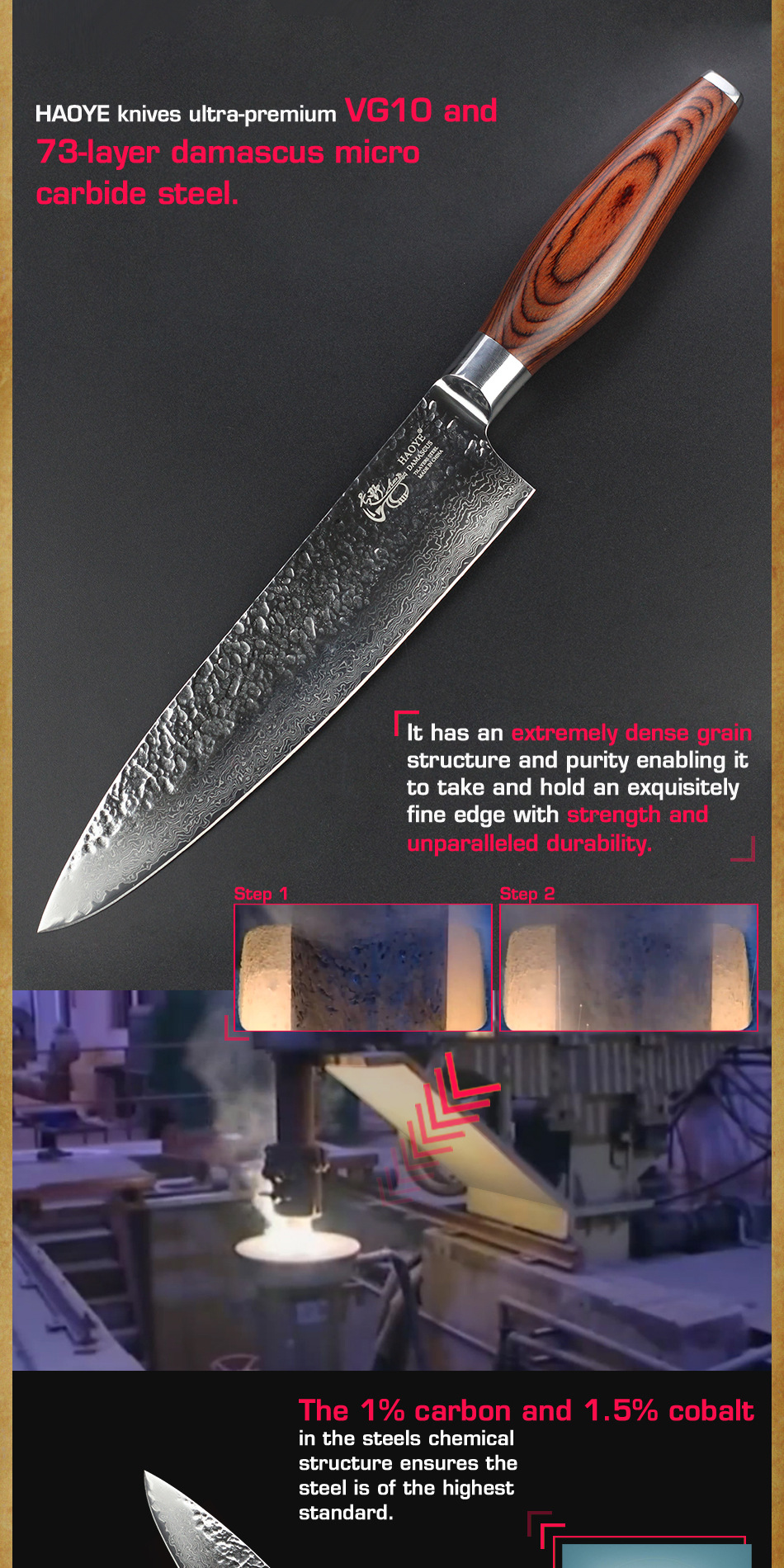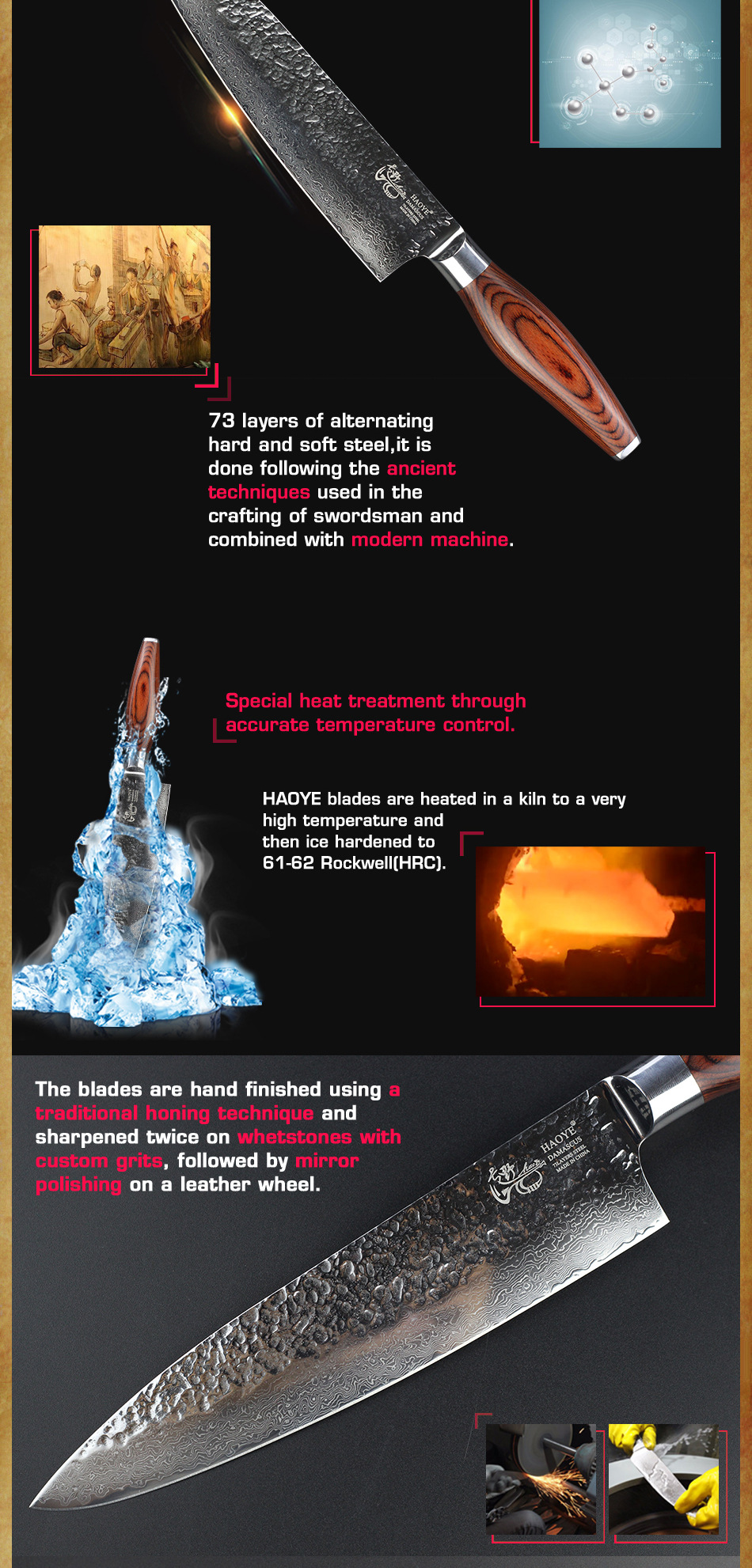 Ручная работа:73 слоя чередующейся твердой и мягкой стали, HAOYE лезвия нагреваются
