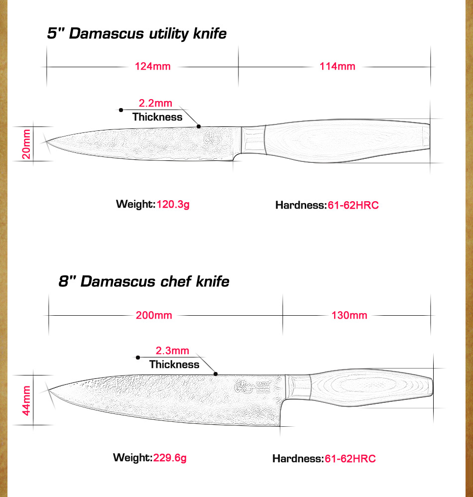 Продукт:8-дюймовый дамасский нож шеф-повара и 5-дюймовый нож.
