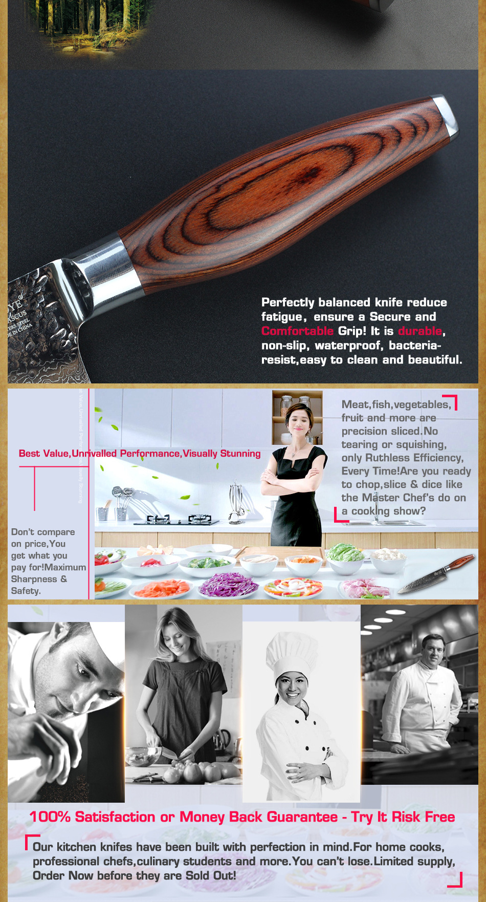 Материалы:73 слоя Дамаск и VG10 супер сталь