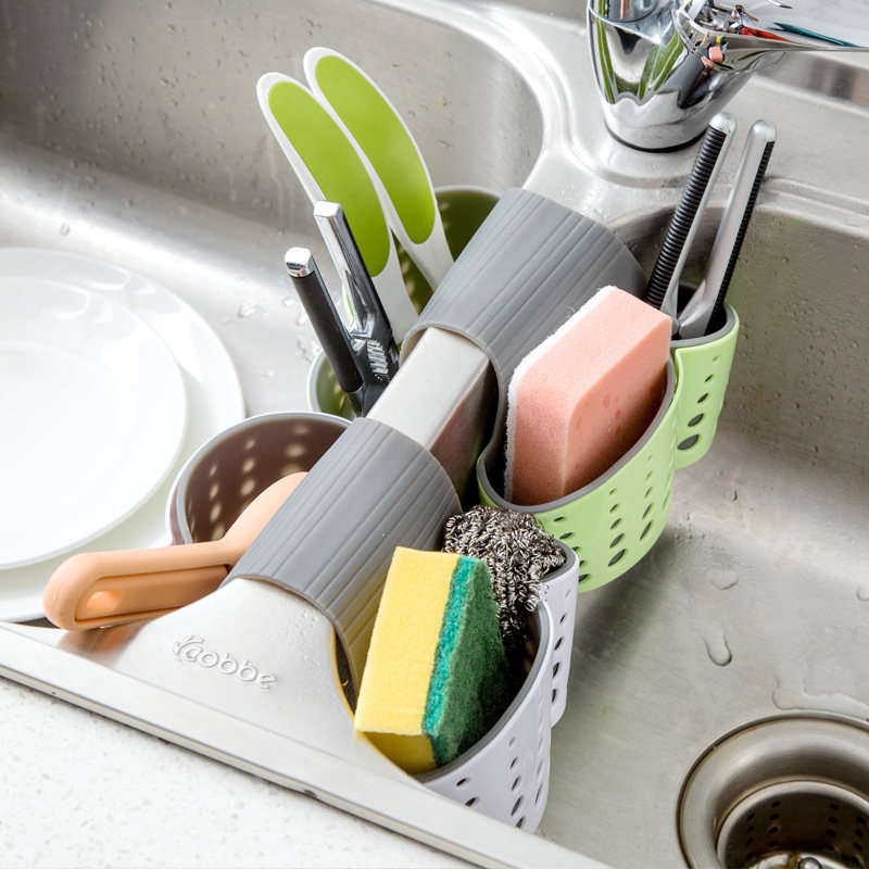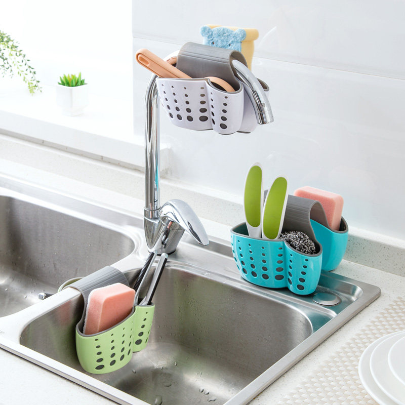 - Регулируемый ремень висит раковина caddy от кухонной раковины кран и подходит для большинства стандартных кранов; слив отверстия дизайн раковина caddy держать кухонные губки, скрубберы сухой и чистой.