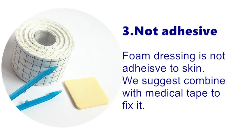 Не прилипающая пена адсорбирует рану exudate и доза не прилипает к рановой кровати