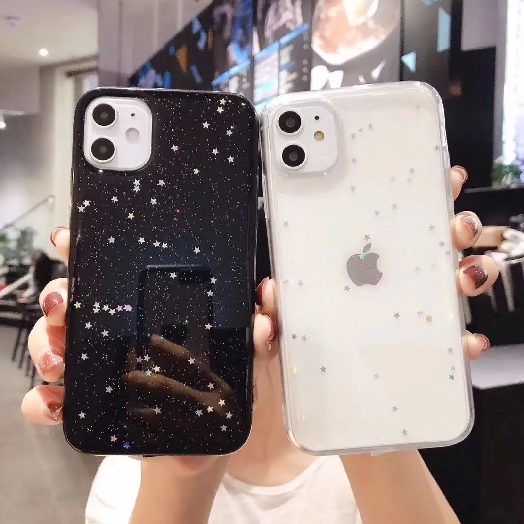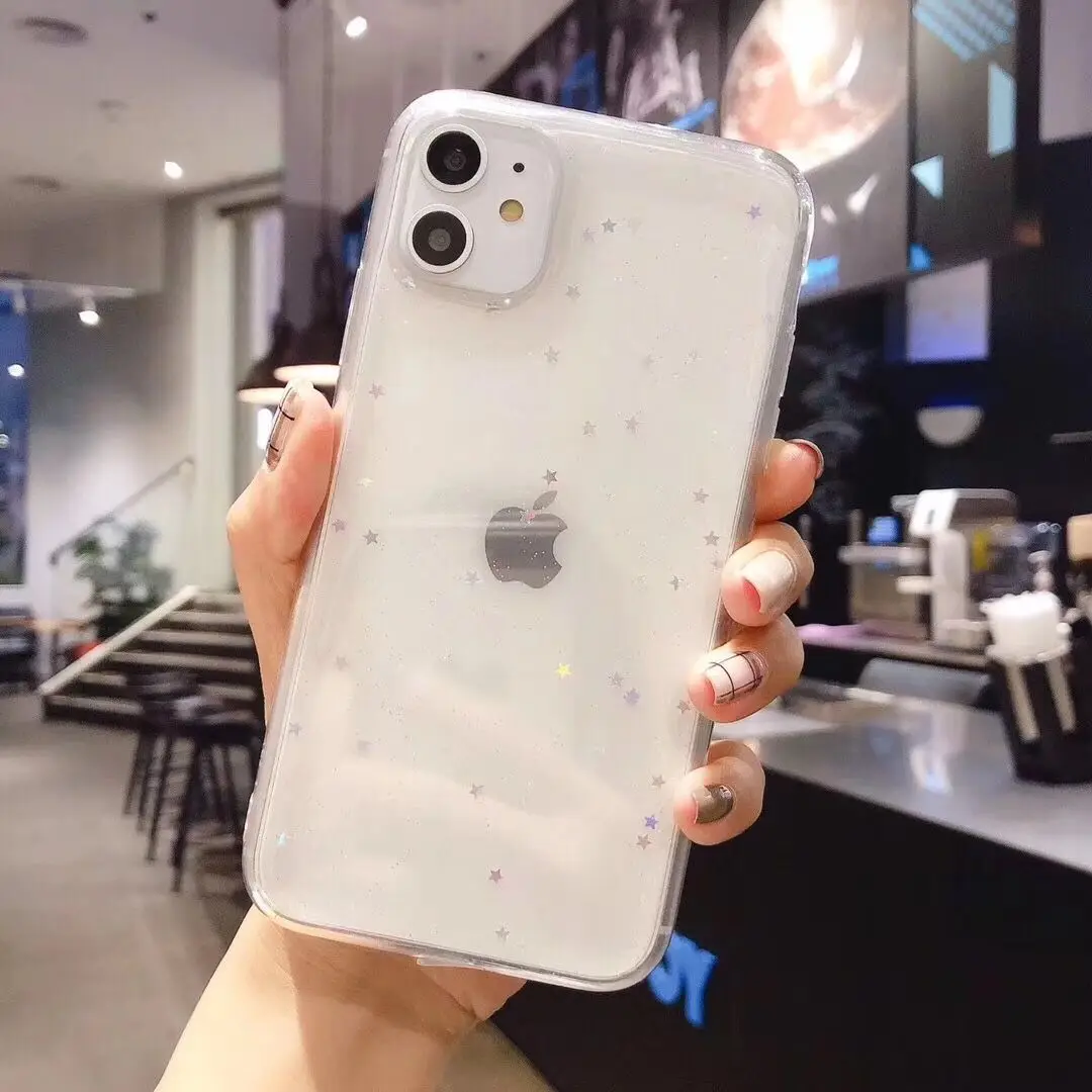 LOVECOM Прозрачный чехол для телефона из мягкого ТПУ для iPhone 11 Pro Max XR XS Max X 5 5S SE 6 6S 7 8 плюс с сияющими блестками на заднюю панель для телефона