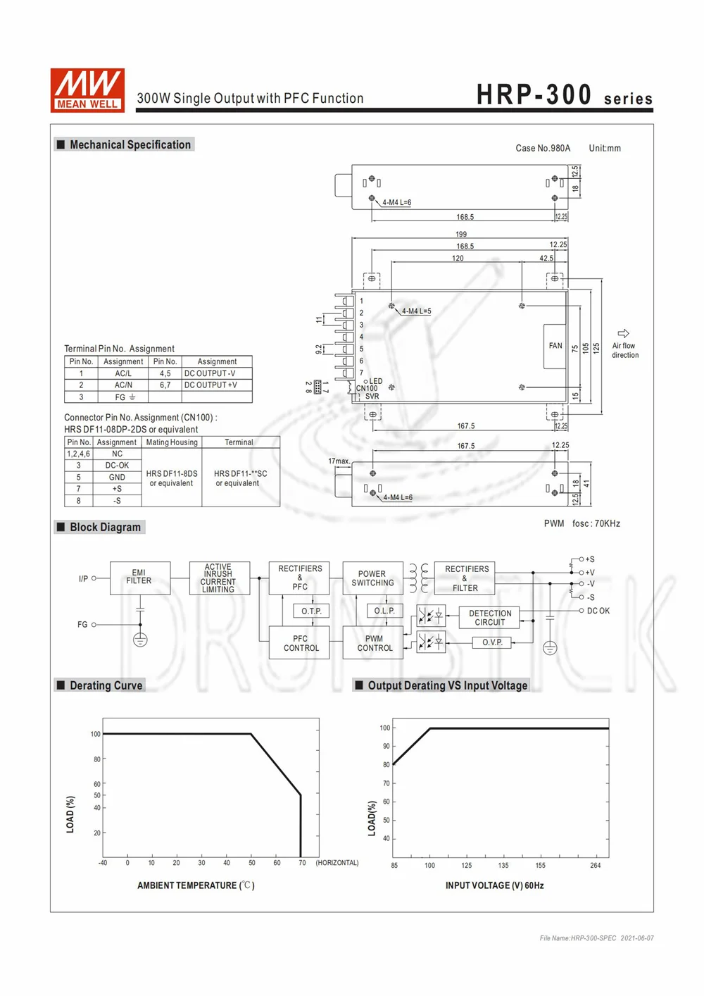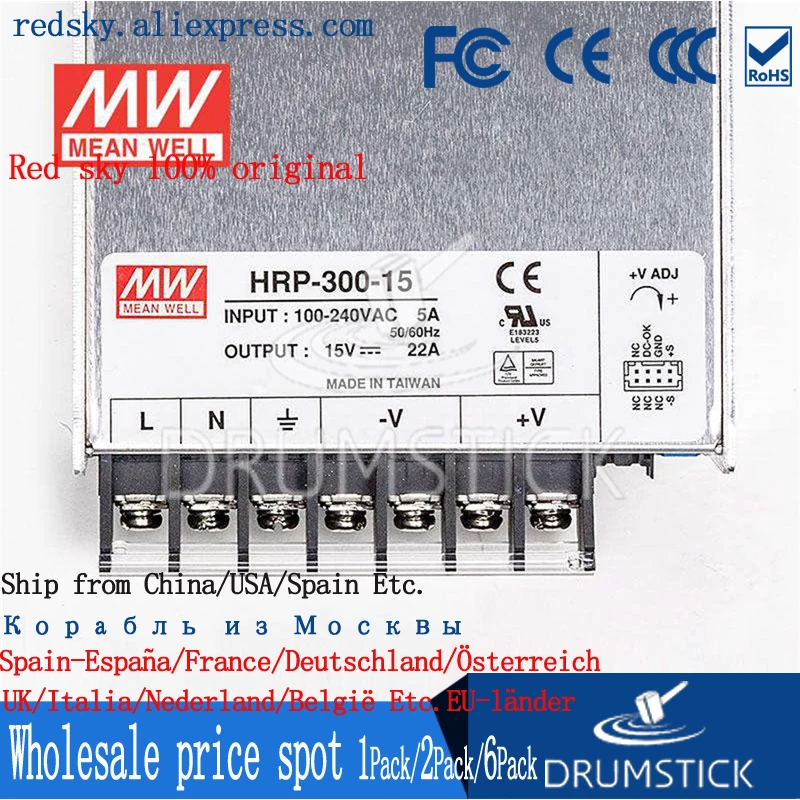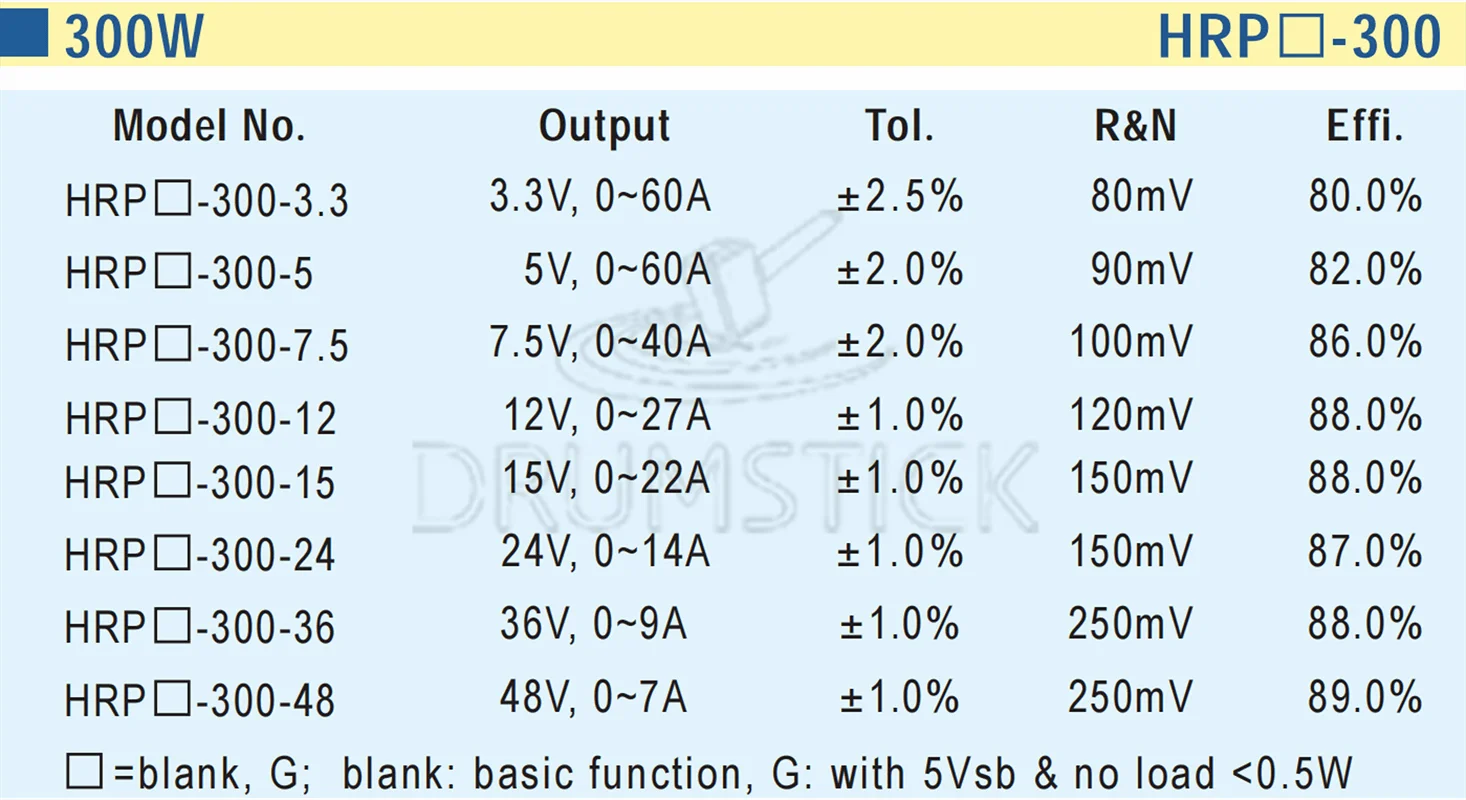 MEAN WELL Enclosed Type HRP-300 PFC HRP(G) series 300W Single Output with PFC Function