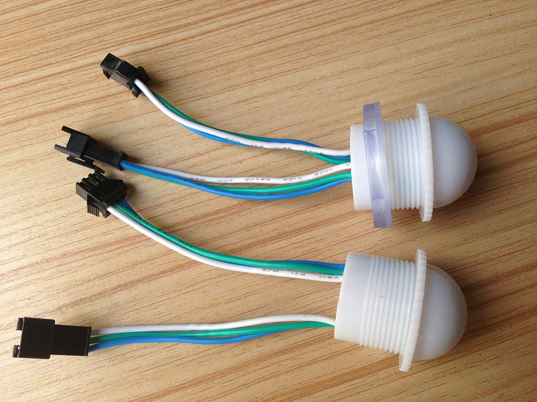 1. 26 мм 3 светодиодный s РГБ, Пиксельная лампа комбинируется пластиковым корпусом, печатной платой и 3-контактным разъемом JST с белым, зеленым и синим проводом (высокотемпературно-эсистентный, морозостойкий УФ-стойкий), 3 шт. 5050 RGB SMD светодиодный, 1 шт. WS2811/UCS1903 IC. UCS1903 может использовать ту же светодиодную программу, что и Чип ws2811.