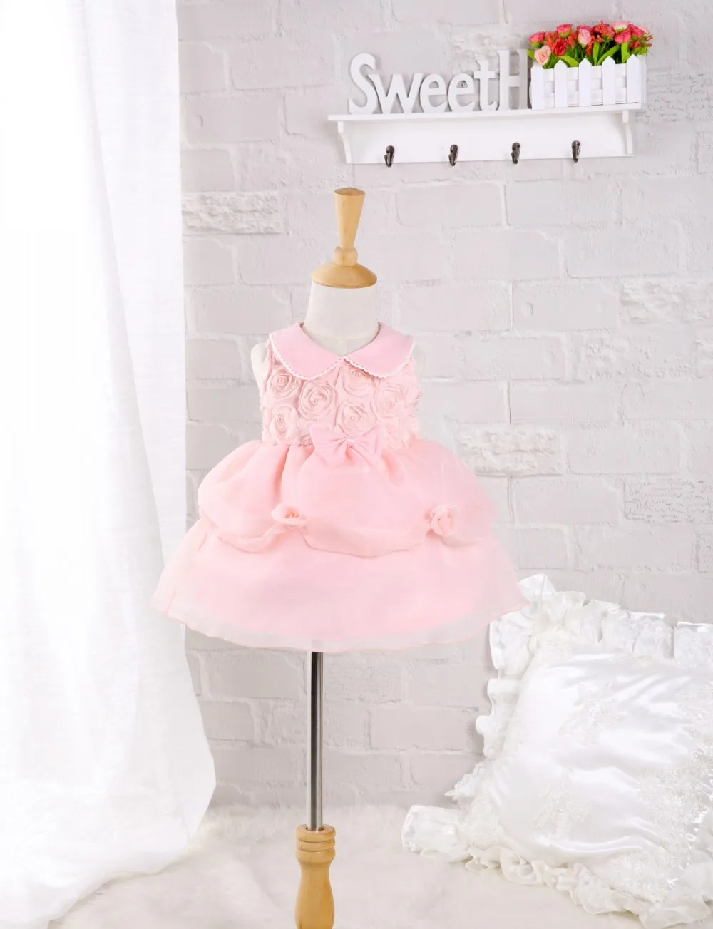 Детское платье принцессы с бусинами и цветами на крестины