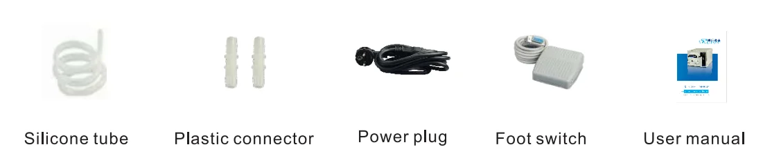 Силиконовая трубка 2 м + пластиковые разъемы 2 шт. + педаль 1 шт. + линия электропередачи 1 шт. + Руководство пользователя