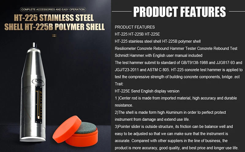 HT-225 высокое качество бетона отскок молоток для испытания на устойчивость