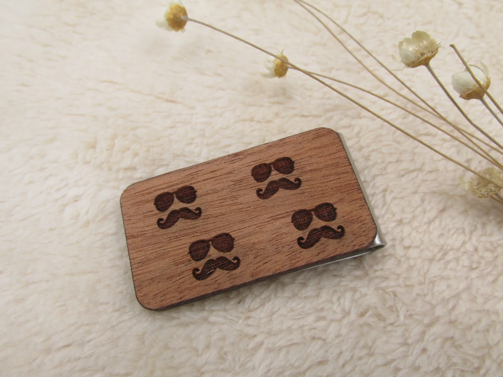 Деревянный квадратный велосипед Усы очки зажим для денег размер 50 мм x 27 мм