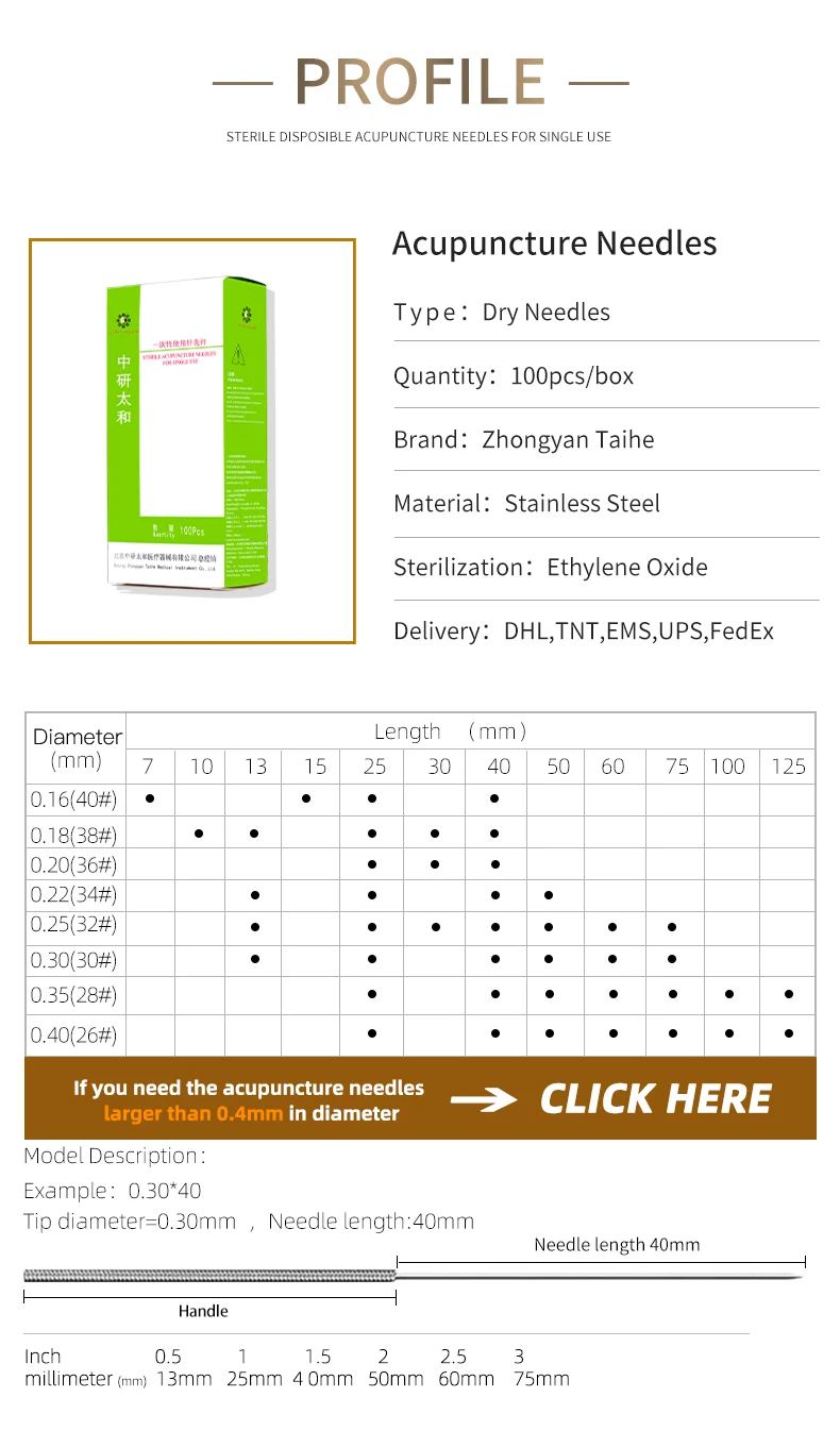 Zhongyantaihe Иглоукалывание иглы одноразовая Стерильная Акупунктура иглоукалывание s Трубка иглы красота массаж иглы