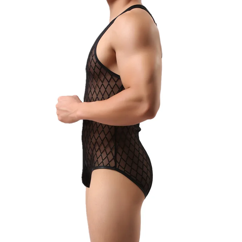 Сексуальные мужские трусы, сетчатые прозрачные комбинезоны, цельное боди, трусы для пениса, мужское нижнее белье, пижама-трико для младенцев, домашняя одежда