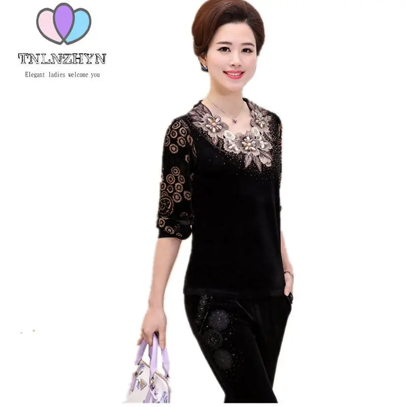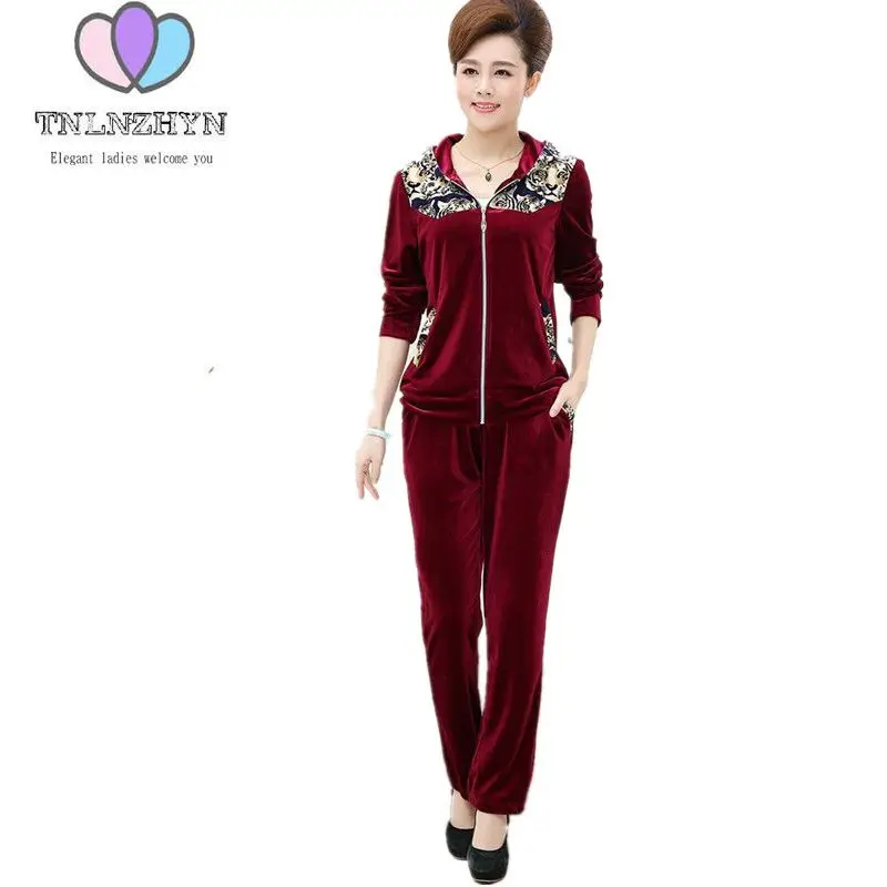 Женский осенний комплект, 2018 весенний модный спортивный комплект из 2 предметов, топы с капюшоном + брюки, Золотая Бархатная спортивная одежда, большие размеры, TNLNZHYN