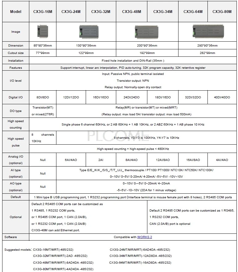 - Поддержка прерывания, линейная дуговая интерполяция, автоматическая Настройка PID. 32K Емкость программы, 32K ретентивный регистр