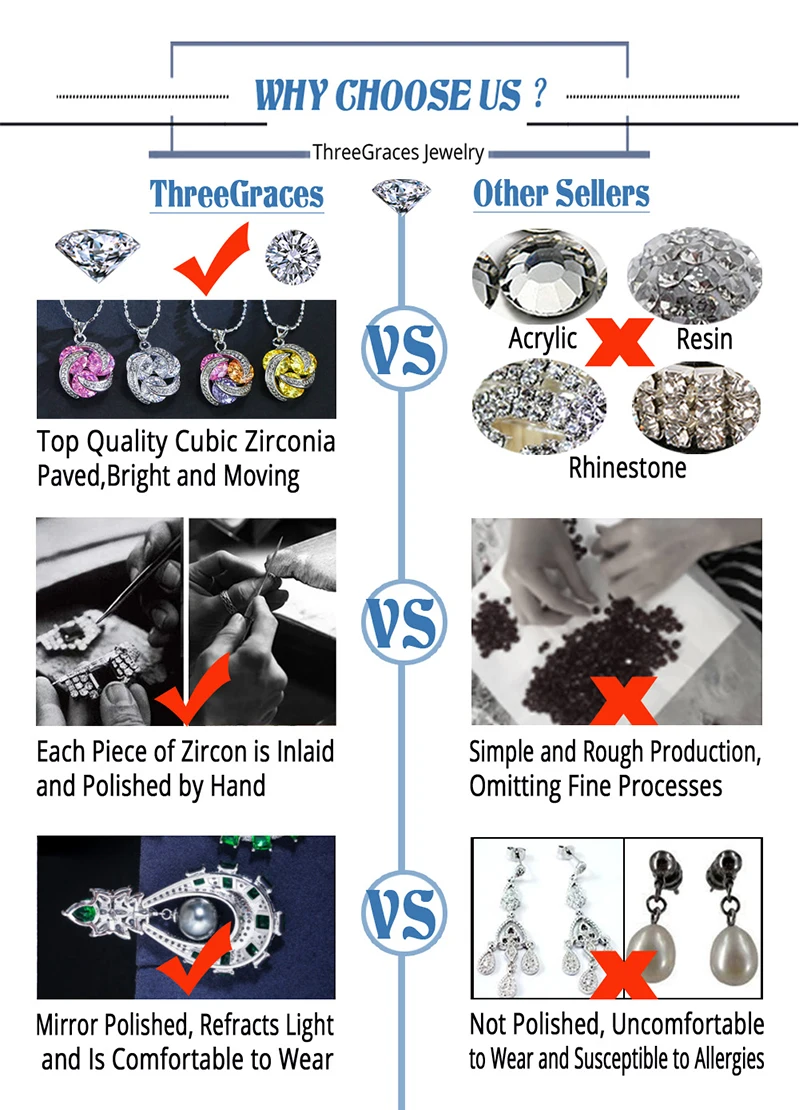 ◆Brand: ThreeGraces ◆Style: Cubic Zirconia Necklace Earrings for Women ◆Main Stone Material: Cubic Zirconia ◆Main Stone Color: White ★Earring Size : Please see the product details (Remarks: Due to the manual measurement, there may be a slight error) ◆Fit for: Young and Maturity female both ◆Gift for: Bride /Bridesmaid /Mom /Girlfriend /Wife /Daughter /Female Friends /Yourself ◆Wearing Occasion: Shopping /Wedding /Party /Prom /Anniversary / Christmas /New Year /Valentines day ★This Item Including -- Each pair of earrings has its own price ★Environmental Standard: Hypoallergenic, Lead, Nickel free ★Note: 100% of each image is taken by real products ☛Drop Shipping Customer (We can send the parcel without any our tags,please leave the message when you place the order.We also provide some discount for you) ☛Wholesale Customer (Total order amount>$200,you will be our Wholesale Customer,we will send to you by express shipping,like DHL and ARAMEX for free shipping)