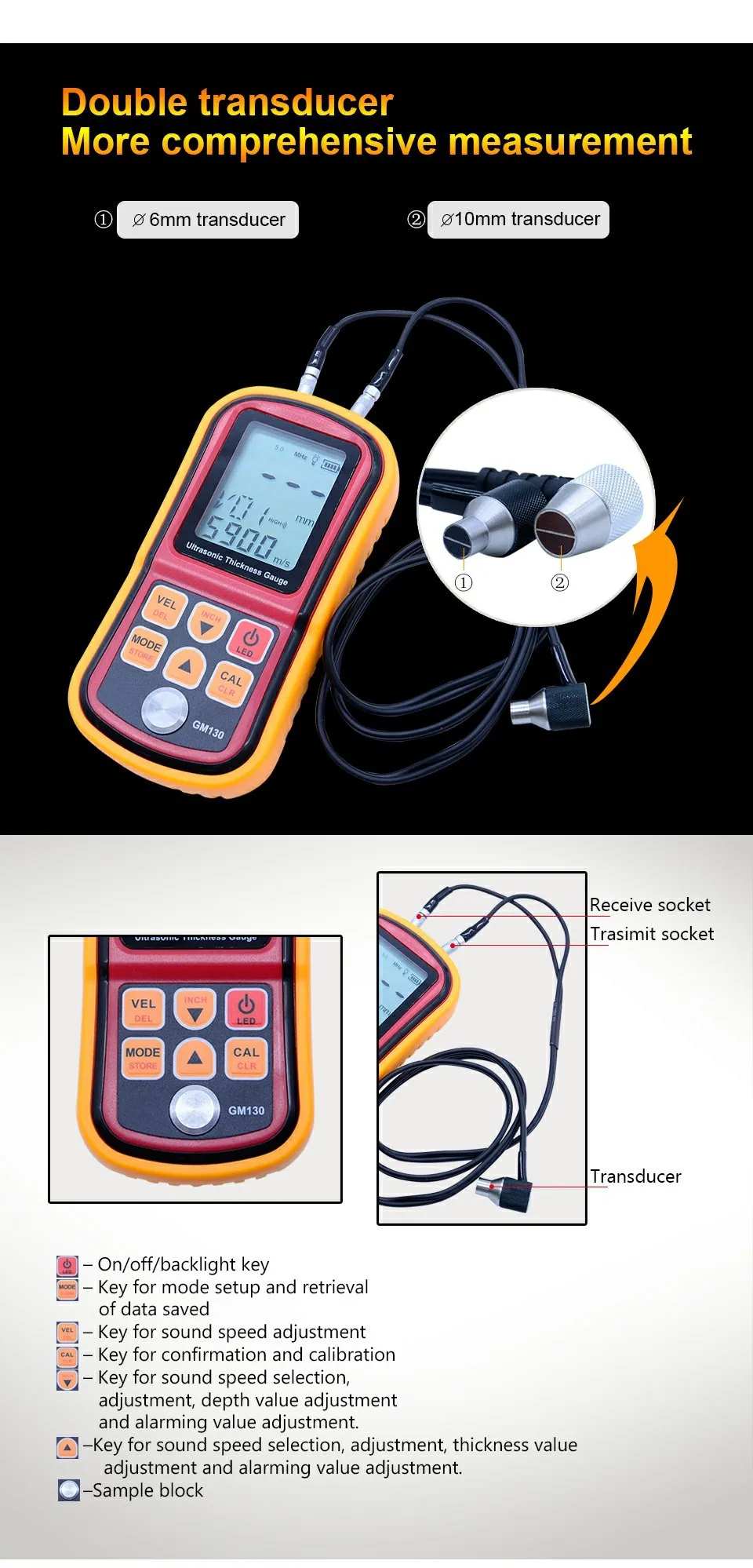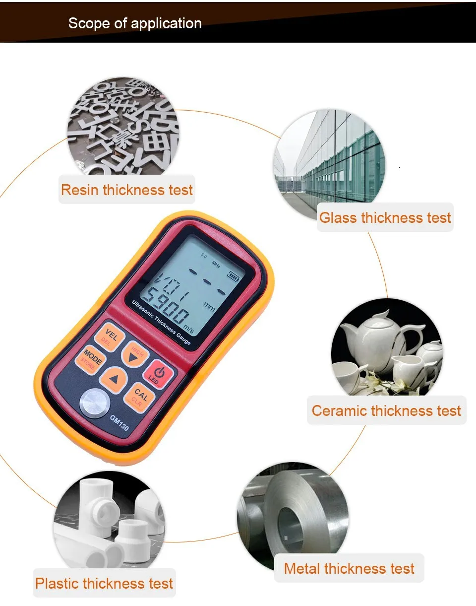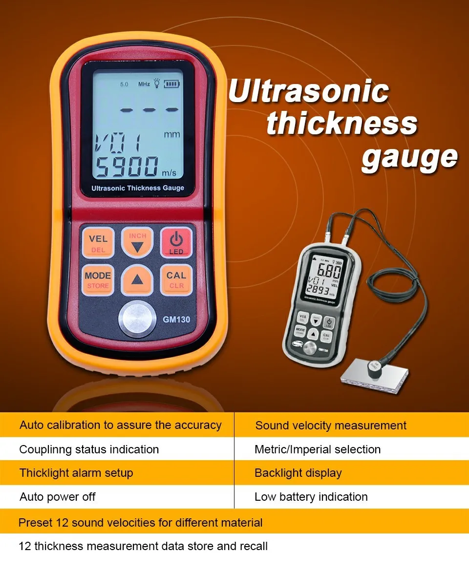 GM130 цифровой ультразвуковой измеритель толщины тестер толщины стали 1,0 до 300 мм измеритель скорости звука с коробкой для переноски