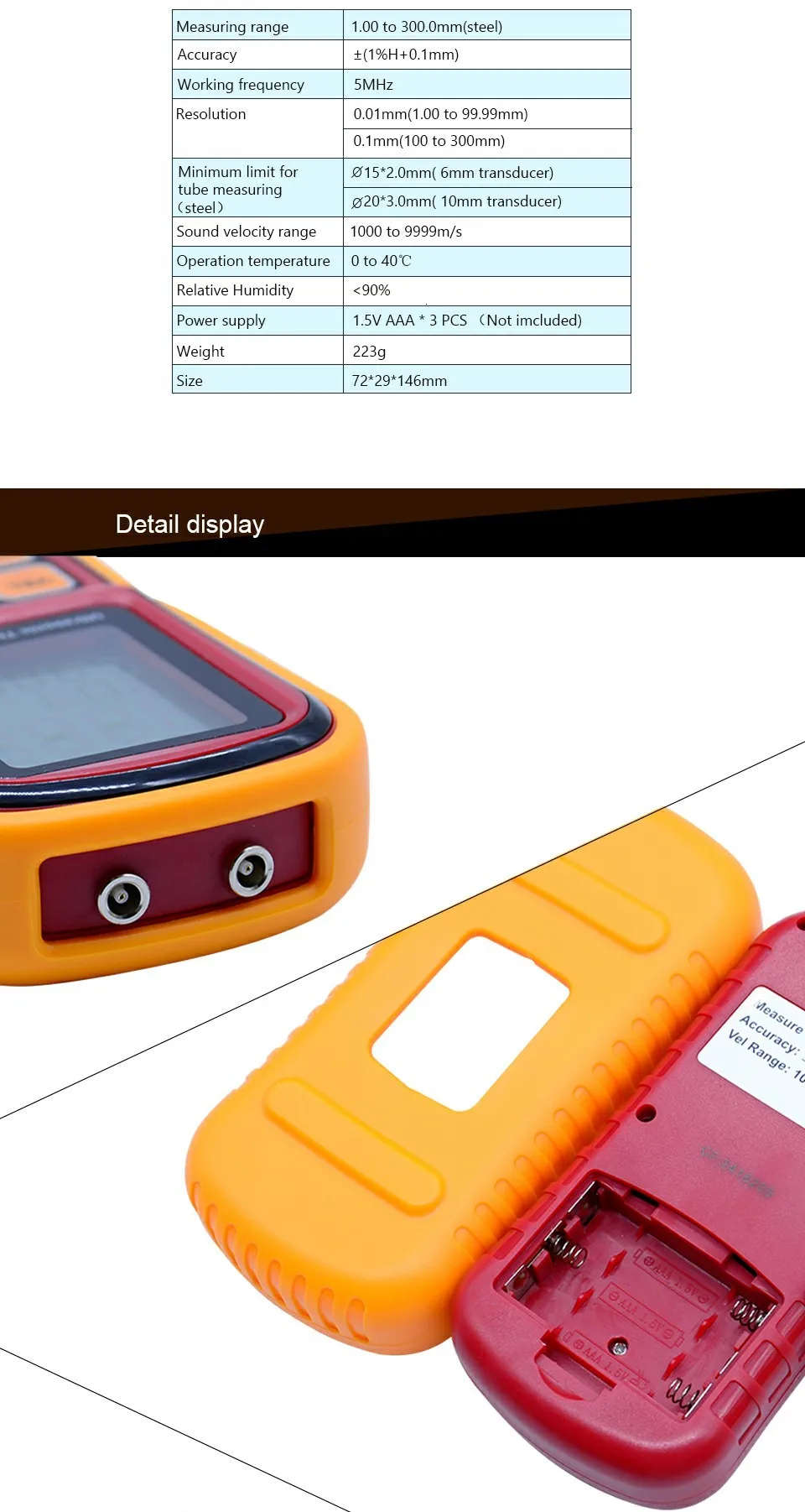 Особенности и функции: 1. Автоматическая Калибровка для обеспечения точности. 2. Автоматическая линейная Компенсация: Эта усовершенствованная программная программа повышает точность путем корректировки нелинейной Точности преобразователя. 3. Сделайте быструю регулировку скорости/толщины звука, и быстро вспомните сохраненные данные 4. Индикация состояния соединения: наблюдение за значком соединения, чтобы узнать, выполнено ли соединение или нет. 5. Доступны 10 функций измерения толщины и отзыва, что облегчает работу по высоте или работу в дикой местности. 6. Измерение скорости звука. 7. 12 скорость звука для различных материалов, которые также регулируются. 8. Более 10000 раз длинных ключей. 9. Большой ЖК-дисплей для легкой индикации. 10. Индикация низкого заряда батареи и автоматическое выключение. 11. Устройство имеет уникальную память, которая сохраняет все настройки даже при выключении питания. Характеристики: Ультразвуковой толщиномер GM130 * Диапазон измерения: 1,0 ~ 300 мм (сталь) * Точность: ±(1% H + 0,1) мм * Разрешение: 0,01 мм * Диапазон скорости звука: 1000 ~ 9999 м/с * Рабочая частота: 5 МГц * Минимальный предел для измерения трубки: Probe 10 мм Зонд: Φ20*3 мм (сталь) Probe 6 мм Зонд: Φ12*2 мм (сталь) * Автоматическая Калибровка для обеспечения точности * Автоматическая линейная Компенсация: Эта усовершенствованная программная программа повышает точность путем корректировки нелинейной Точности преобразователя. * Функция хранения данных/отзыва данных/удаления данных * Измерение скорости звука * Выбор метрических/имперских единиц * Индикация низкого заряда батареи * Автоматическое выключение питания * ЖК-дисплей с подсветкой * Гарантия: 12 месяцев * Способ упаковки: без розничной коробки * Источник питания: 3 шт. * 1,5 В AAA щелочные батареи (не входят в комплект) * Вес: 210 г * Размер: 70*145*28 мм Посылка: 1 * Ультразвуковой толщиномер 1 * Соединительный агент 1 * Плоский Средний файловый зонд 1 * дуговой зонд 1 * Руководство по эксплуатации 1 * алюминиевая коробка + цветная коробка (все в комплекте, как на картинке) Обратите внимание: