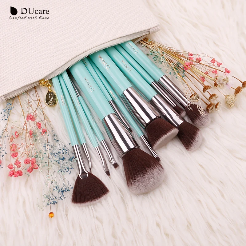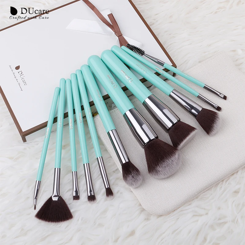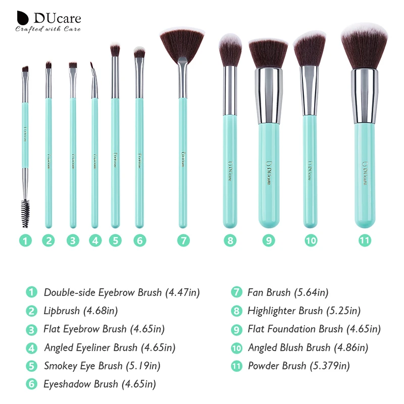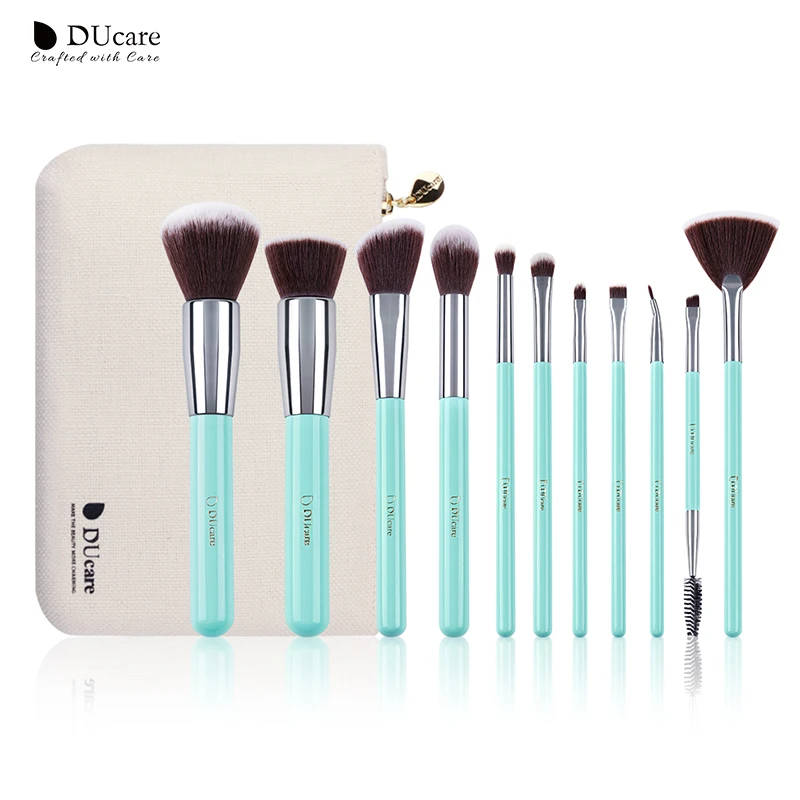 DUcare 11 шт. набор кистей для макияжа Профессиональная светло-зеленая ручка Кисть для макияжа Пудра основа скошенная Кисть для макияжа глаз кисть с сумкой