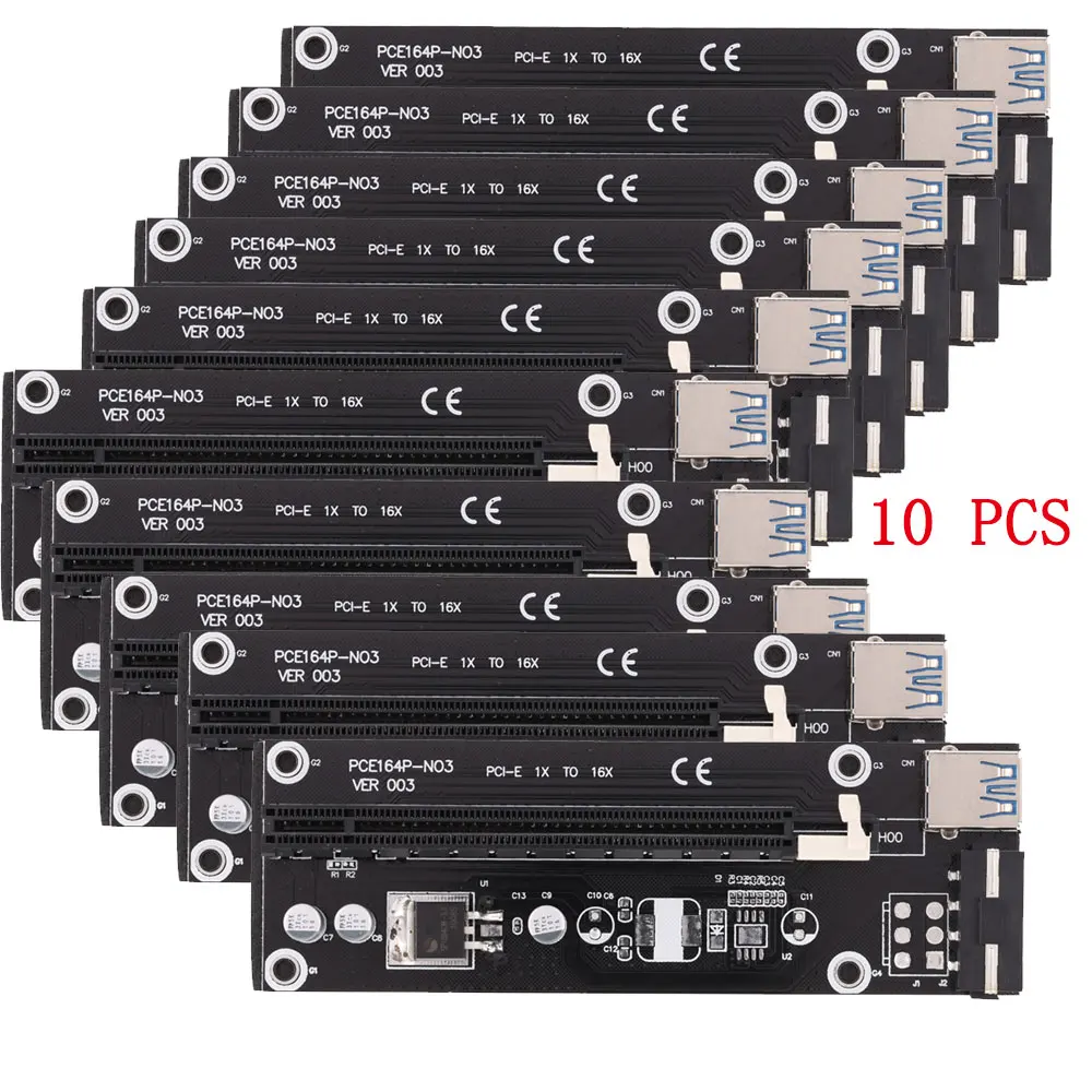 10 шт. PCI-E PCI Express 1x к 16x расширитель платы USB 3,0 адаптер с SATA кабель питания USB кабель для биткоина шахтера