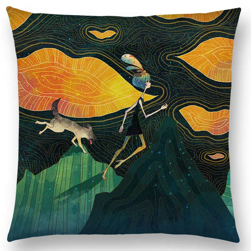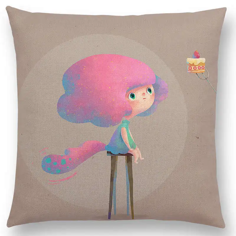 Чехол на подушку с односторонней печатью, задняя часть-чистый пеньковый цвет.