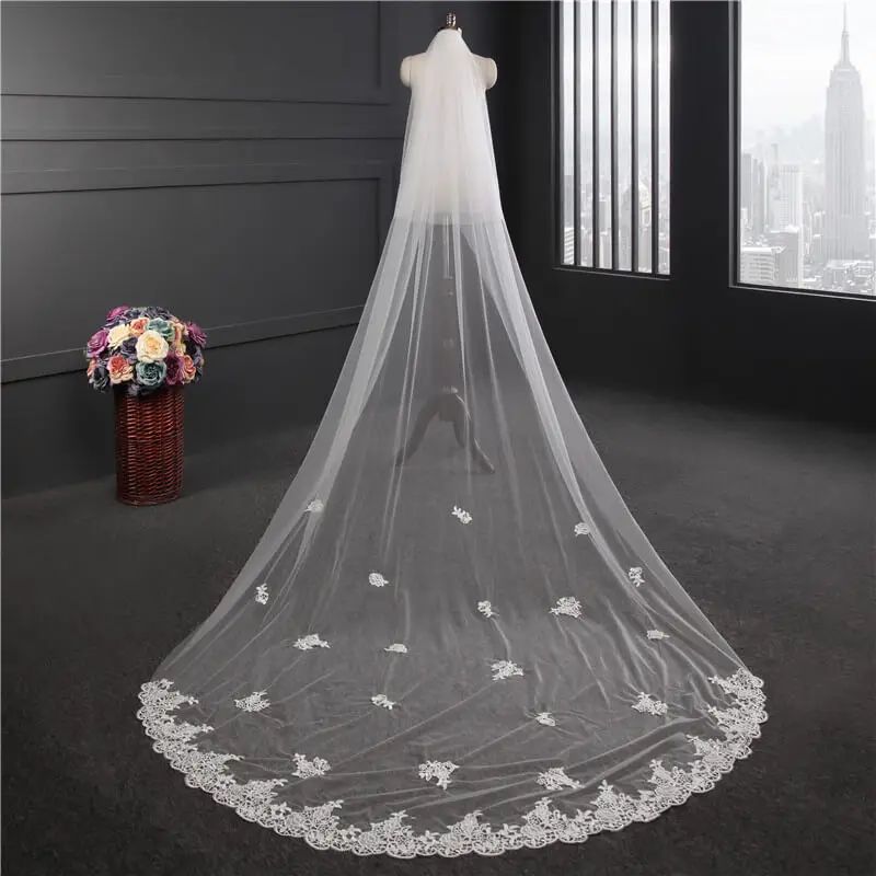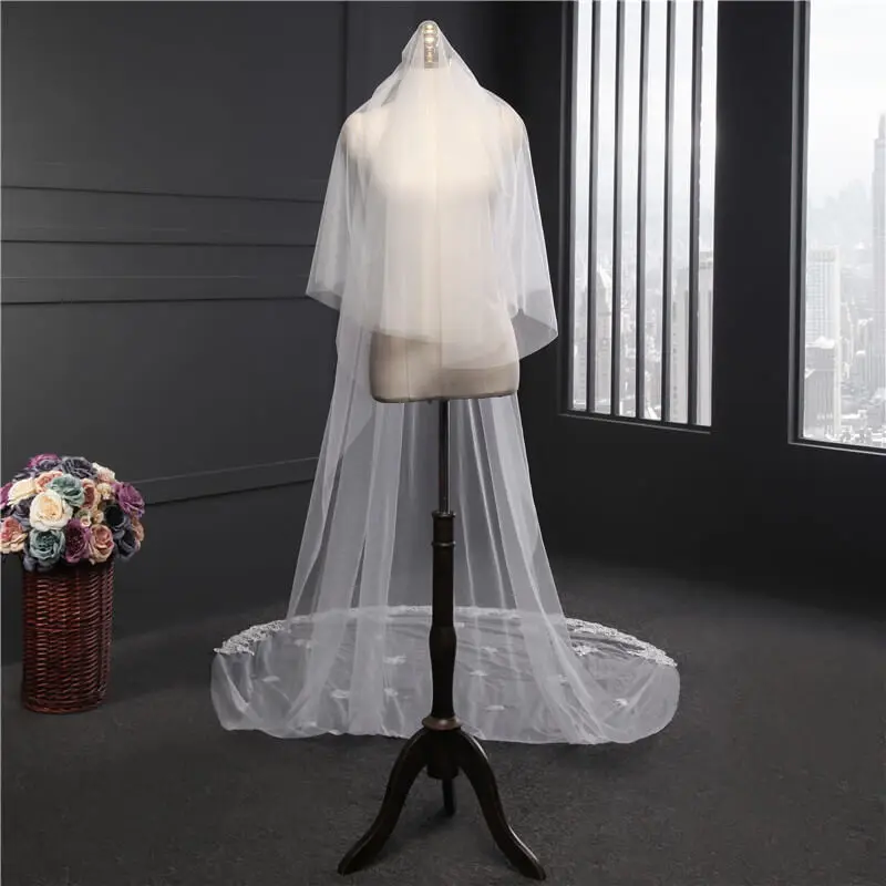 Длинная фата для невесты двухслойная свадебная цвета слоновой кости с гребнем