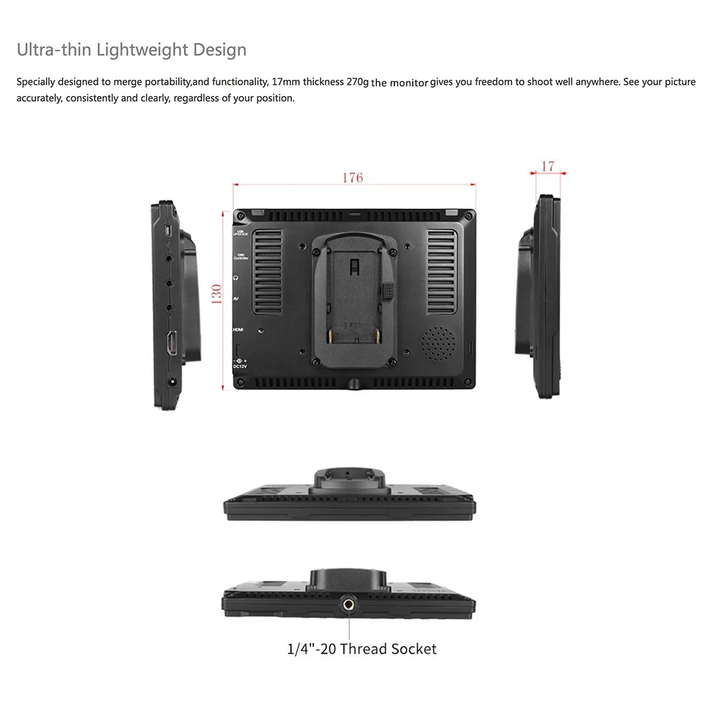Andoer 7 "Full HD IPS 1920 × 1200 полевой монитор на камере с расширенными функциями. Приносит вам идеальный визуальный опыт, широко используемый в кино и ТВ-поле съемки.