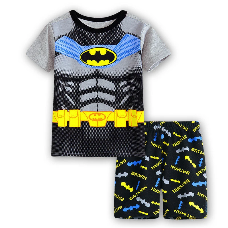 Новая детская девочка Мальчик Лето Детская одежда Набор мультфильм Бэтмен прохладная Пижама с коротким рукавом + шорты хлопок мода печать одежды