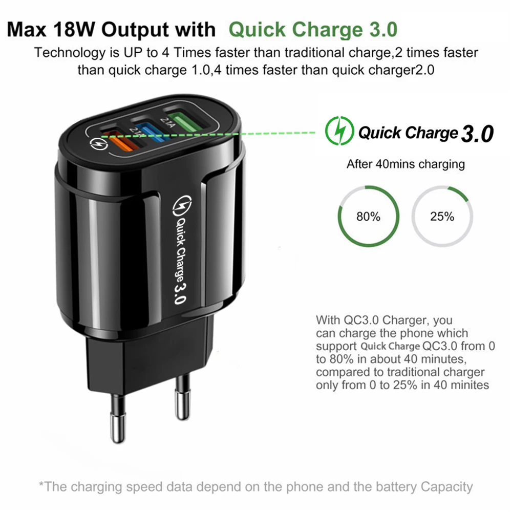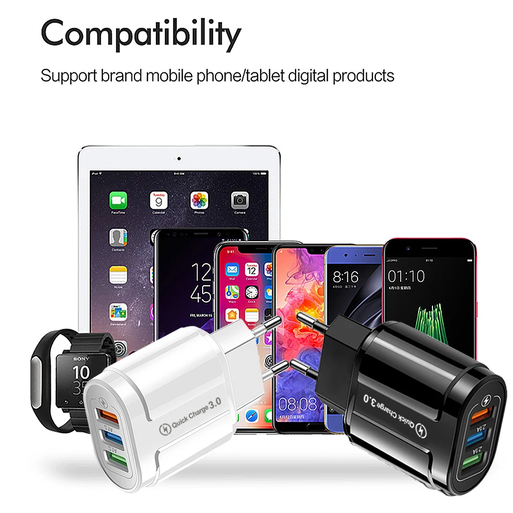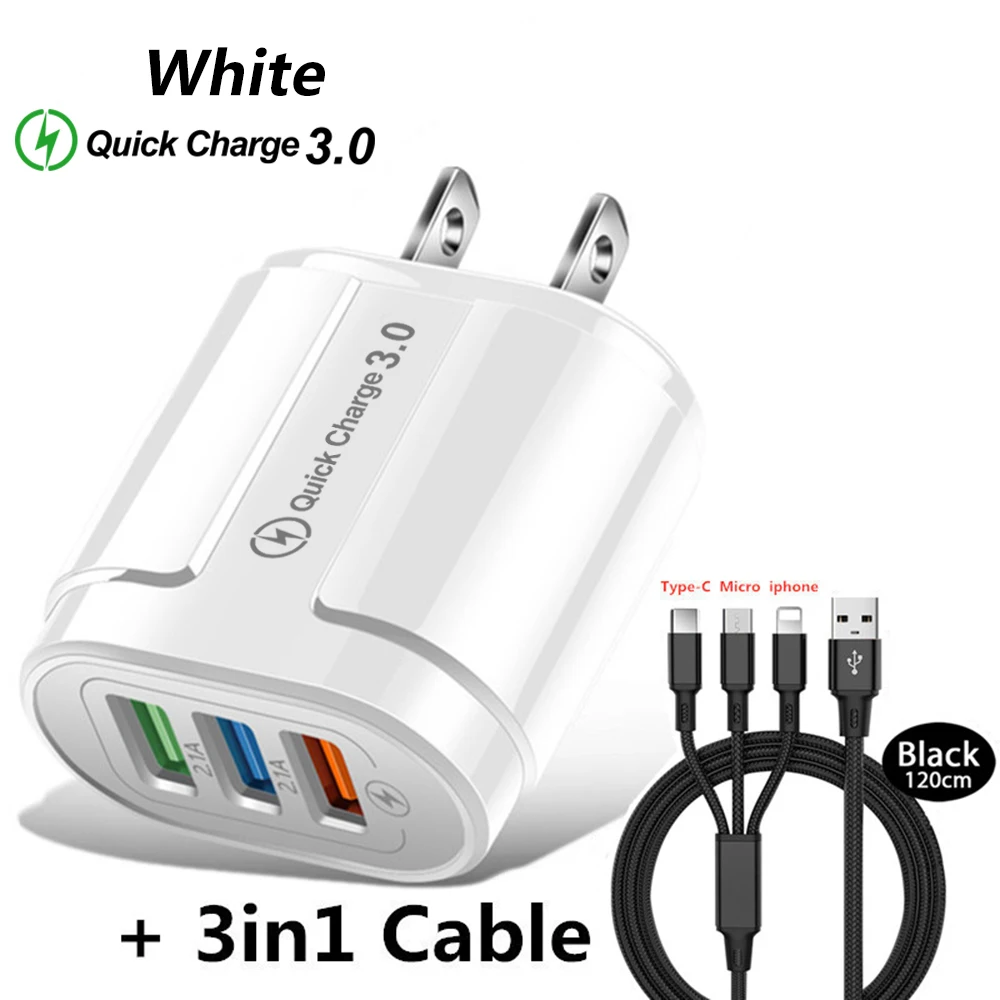 Универсальное 3 порта USB зарядное устройство EU/US Quick Charge 3,0 3A быстрое USB зарядное устройство Быстрая зарядка Совместимость для iphone Samsung Xiaomi Huawei