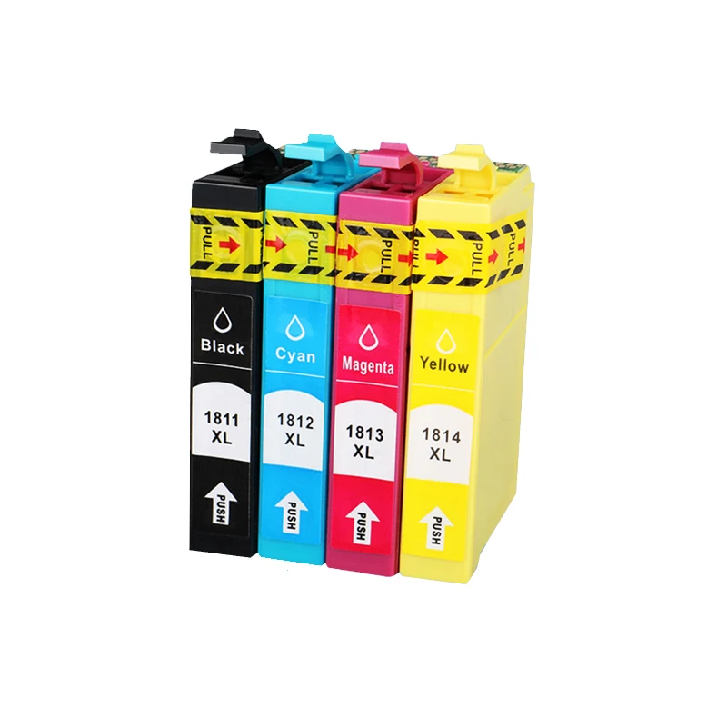 Модели принтеров: Для печатающей головки Epson XP-212 XP-215 XP-225 XP-312 XP-315 XP-412 XP-415 Для Espon XP-30 XP-102 XP-202 XP-205 XP-302 XP-305 XP-402 XP-405/405WH Посылка Содержание: 1 × для Espon T1811 черный совместимый чернильный картридж с чипом (18 мл) 1 × для Espon T1812 Cyan совместимый картридж с чипом (18 мл) 1 × для Espon T1813 Magenta совместимый чернильный картридж с чипом (18 мл) 1 × для Espon T1814 желтый совместимый чернильный картридж с чипом (18 мл)