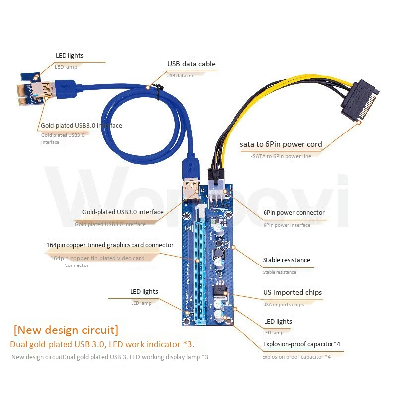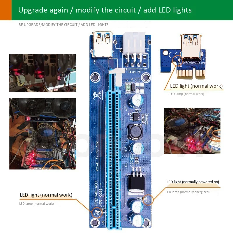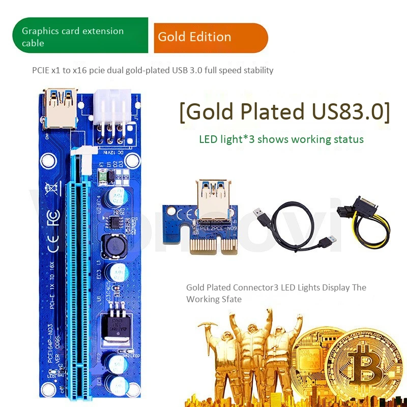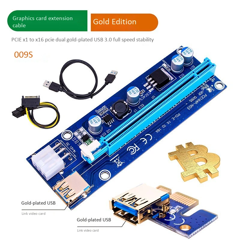 Посылка: Адаптер PCI-E 16X Aadapter-1 шт. 1 x PCI-E 1X подъемная плата Кабель USB 3,0-1 шт. 1 кабель питания SATA 15 Pin-6Pin