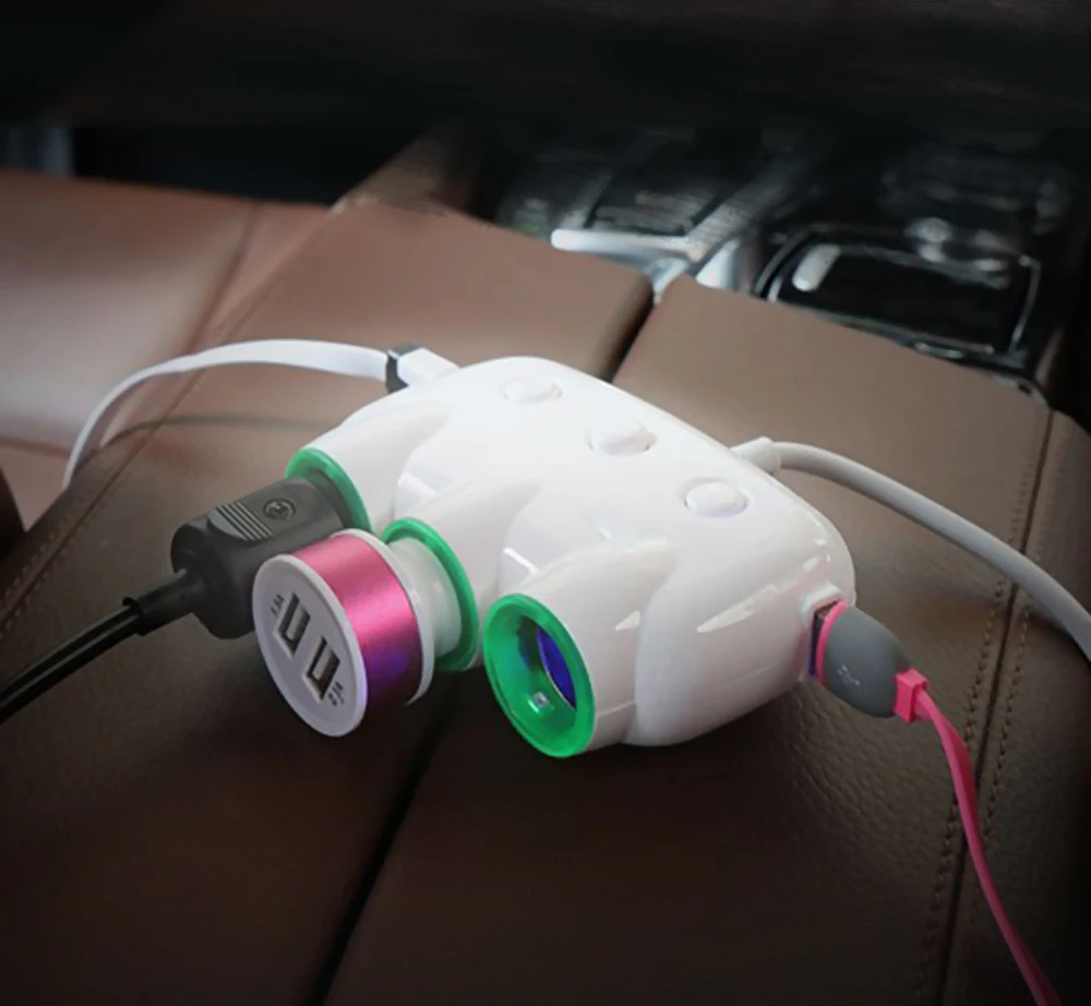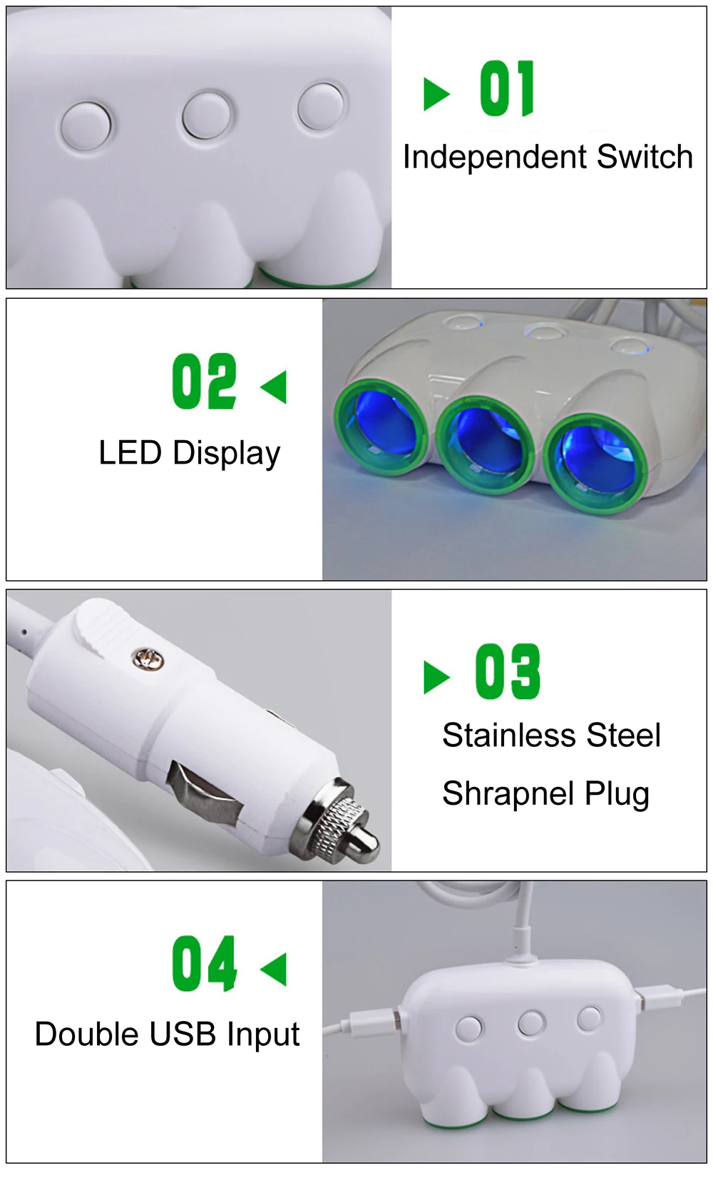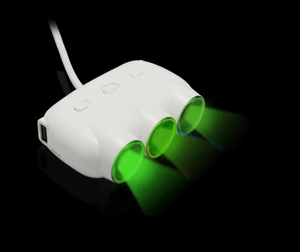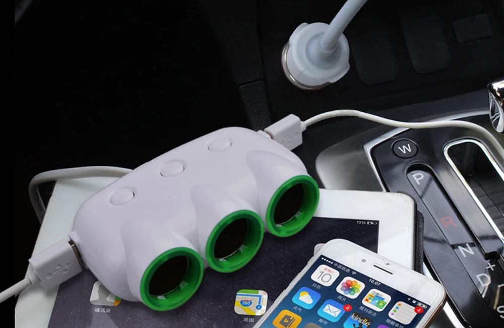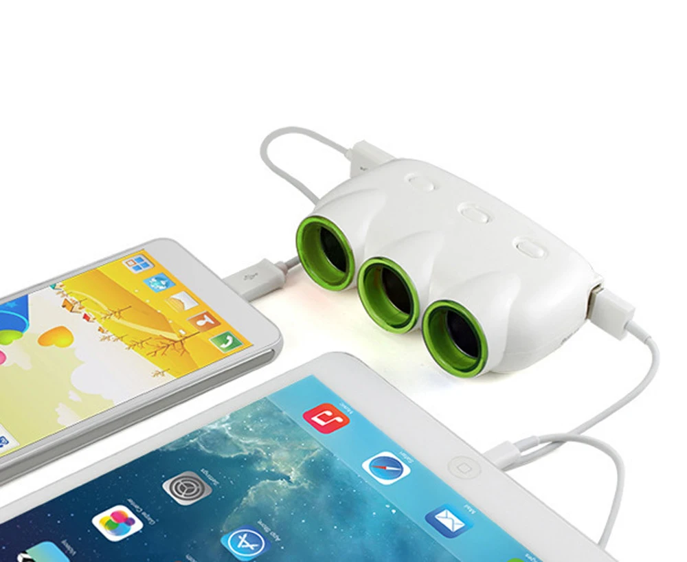 SUMPK 5V3.1A Multi-purpose car charger 3-Socket Cigarette Lighter Adapter Dual USB Universal Car-charger for iPhone for Samsung
