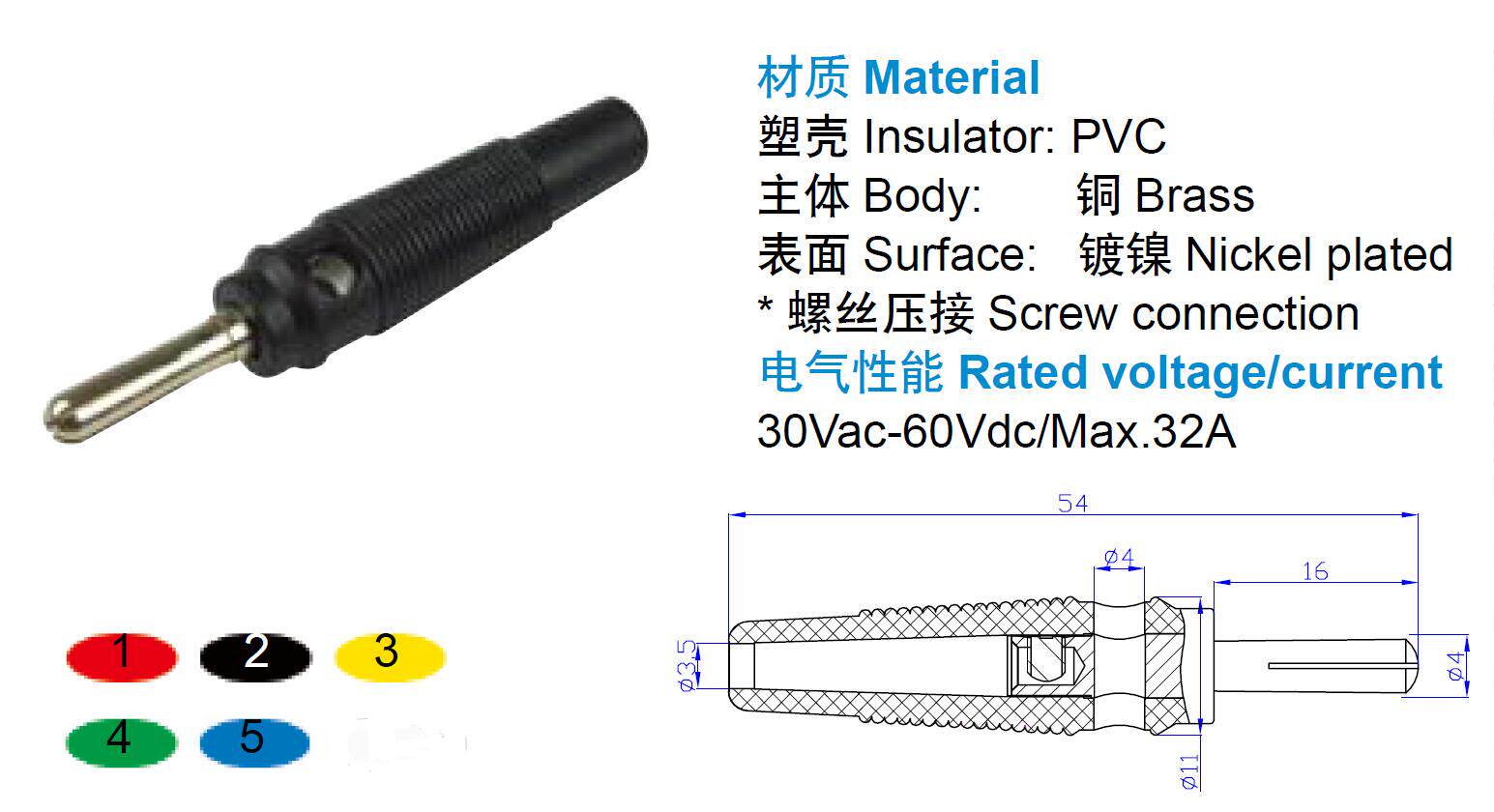 Название продукта: $ number 4 мм, экологически чистый никелированный штекер банана