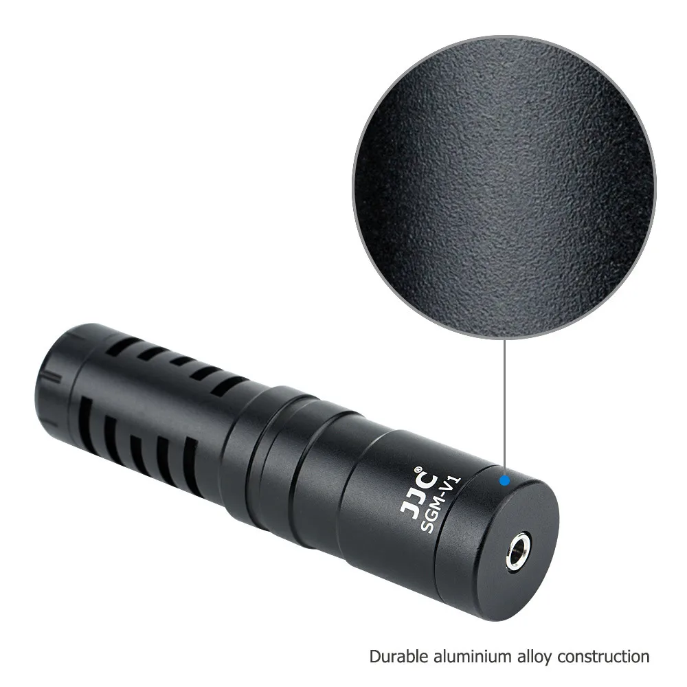 The SGM-V1 Cardioid Microphone is specially designed to improve the sound quality of videos. This microphone utilizes a cardioid polar pattern to focus on sound in front of it while attenuating sound entering from the rear. With 2 included cables, it can be used on DSLR cameras, camcorders, smart phones, tablets, recorders and etc. The microphone features a detachable shock mount that mounts directly to your DSLR, mirrorless cameras or video camcorders with a standard hot shoe. The supplied windscreens minimize wind noise, making it well suited for outdoor shootings. The durable aluminium alloy construction ensures a long service life. Moreover, no batteries are required to operate the microphone. It runs on plug-in power. This compact and universal microphone will become a good partner for your video shooting.