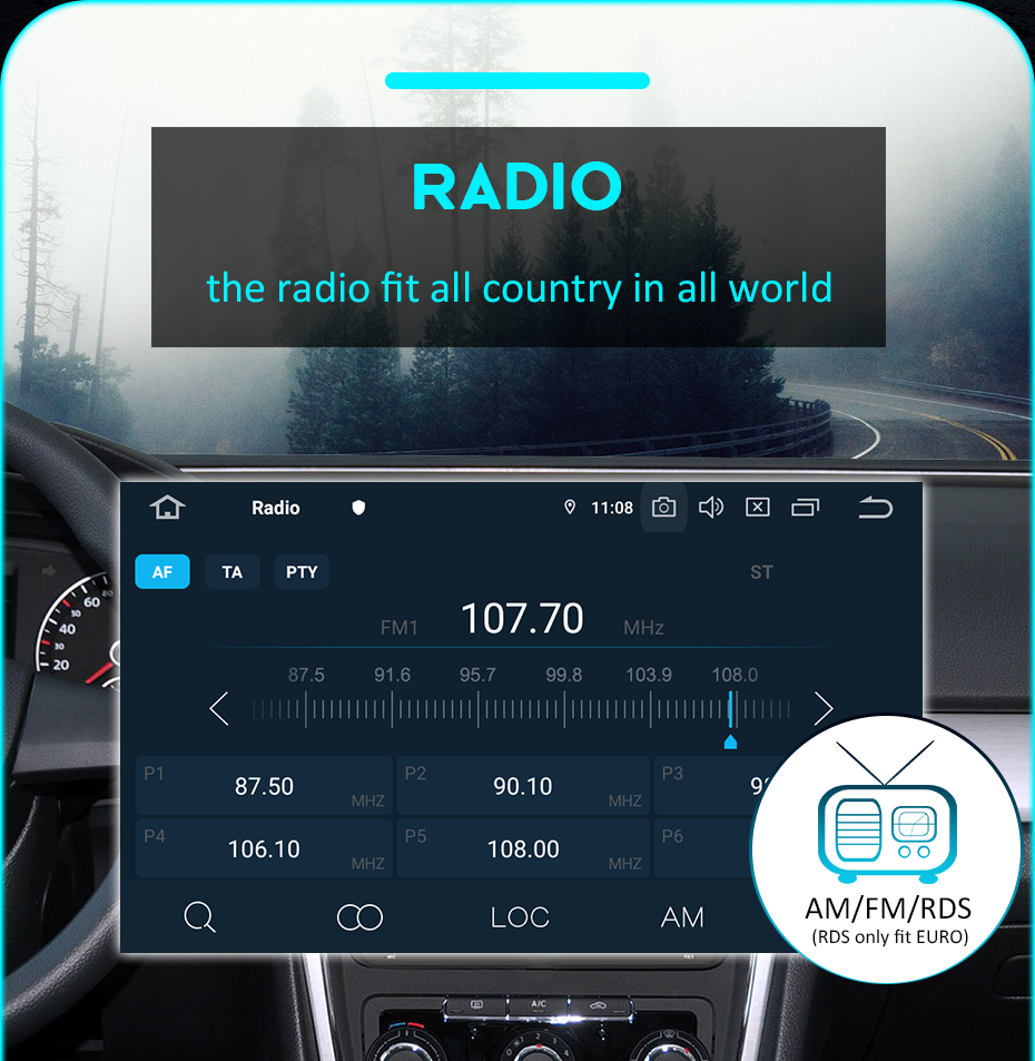Радио включает встроенную функцию радио, которая поддерживает FM AM RDS (в настоящее время только в европейской стране есть RDS сигнал, в другой стране можно использовать FM AM). Наше радио использует лучший радиочип на рынке, он имеет лучший радиосигнал. Прежде чем использовать функцию радио, не забудьте подключить линию ANT к другой линии ANT или линии AMP. Если вы забудете подключить эту линию, радиосигнал будет очень плохим.